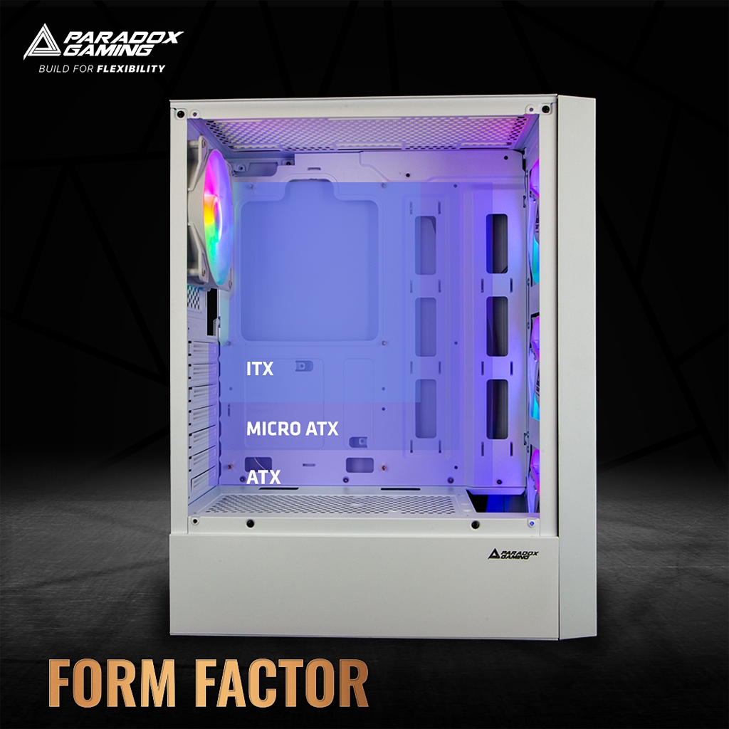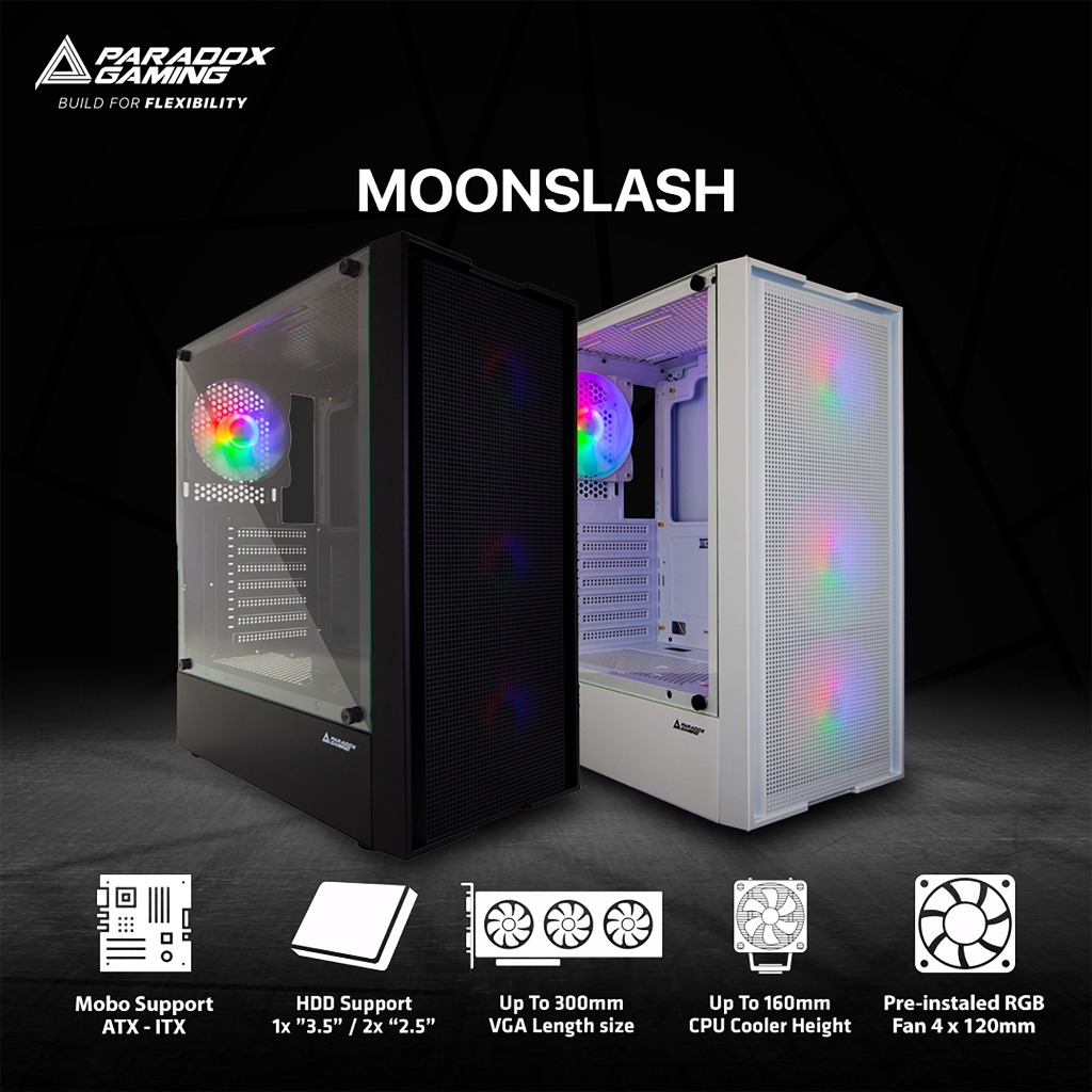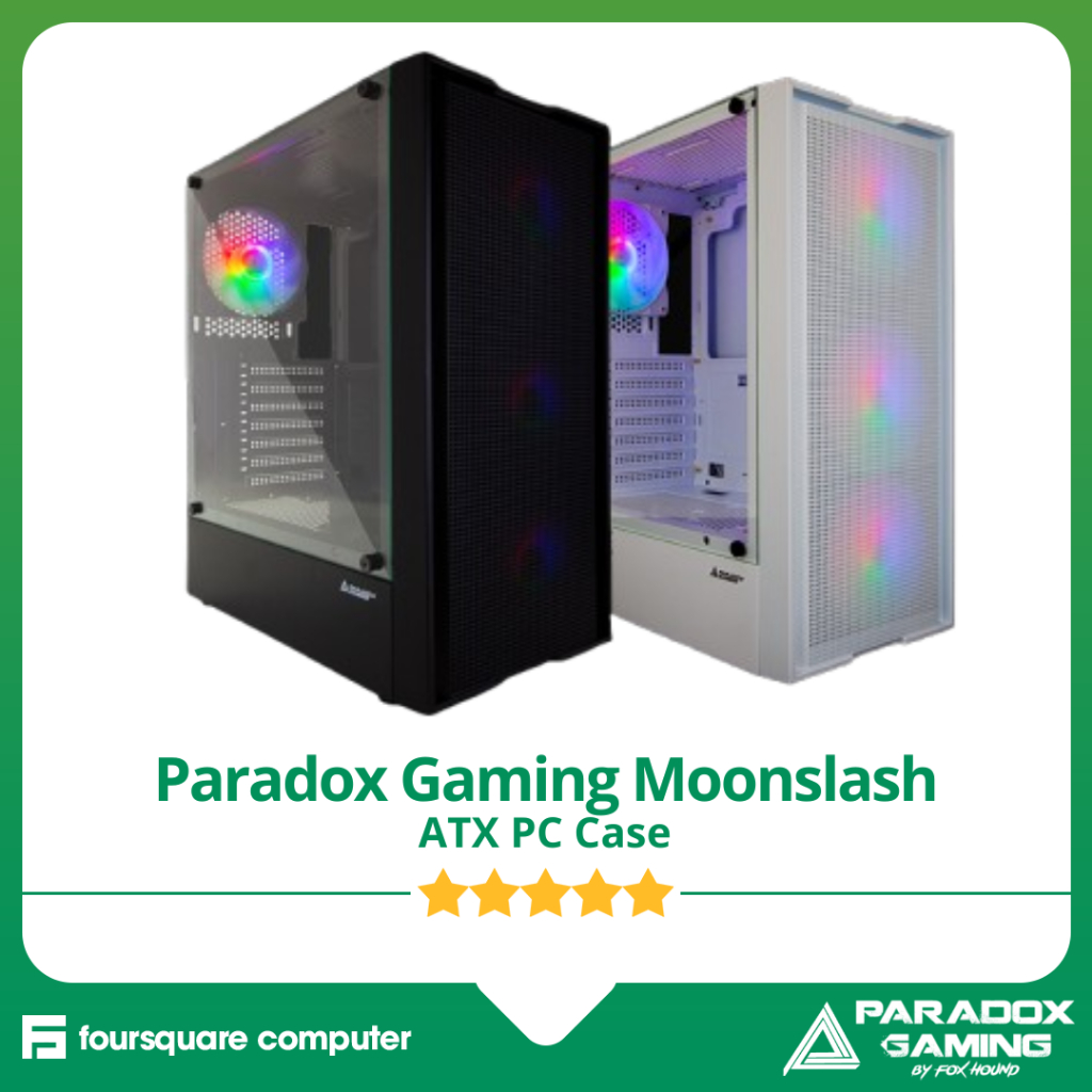 Paradox Gaming Moonslash White & Black + 4X Rgb Fan | Pc Casing Atx | Cpu Case Gaming
