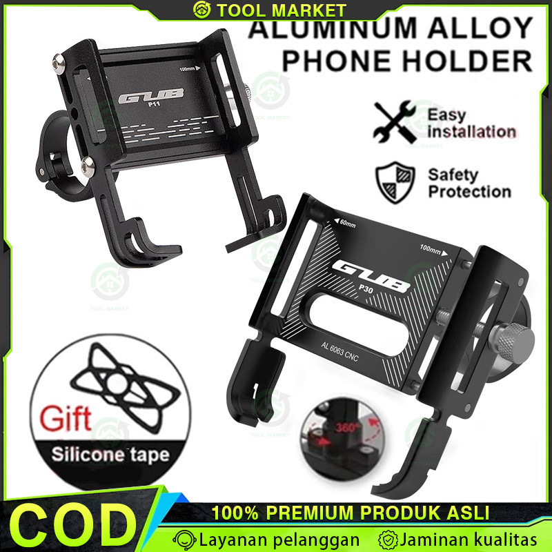 【Hadiah Gratis】GUB P30 Original Holder HP Motor Full Besi Alumunium Alloy Breket Tempat Handphone Dudukan Penyangga Tatakan Ponsel Di Stang Spion Sepeda Motor