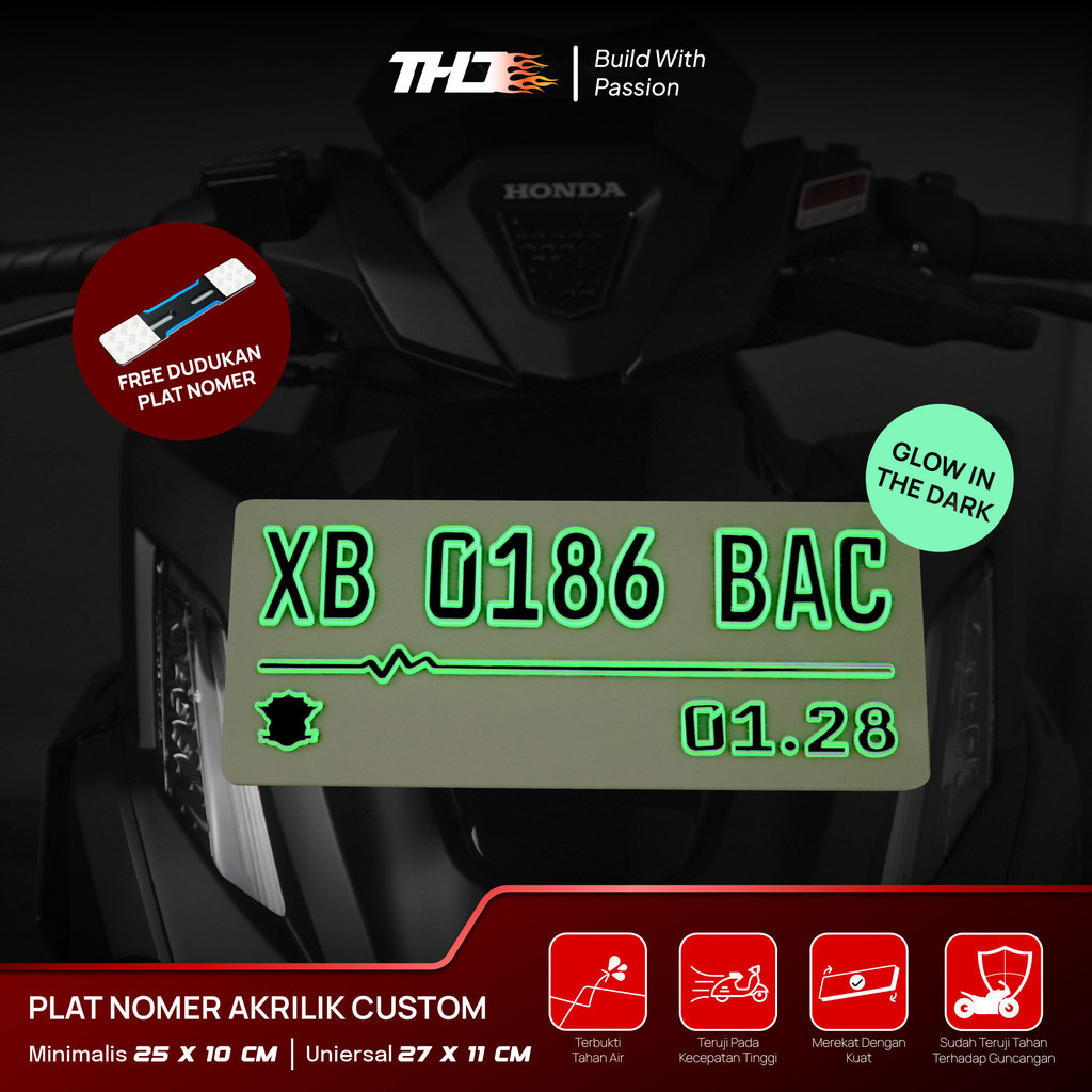 Plat Nomor Motor Custom Glow In The Dark Timbul Fosfor Glow In The Dark Akrilik Aksesoris Motor plat motor custom Plat Motor Timbul