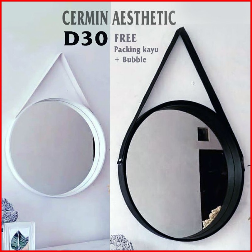 Cermin Bulat Aesthetic Kaca Cermin Frameless Gantung Tali