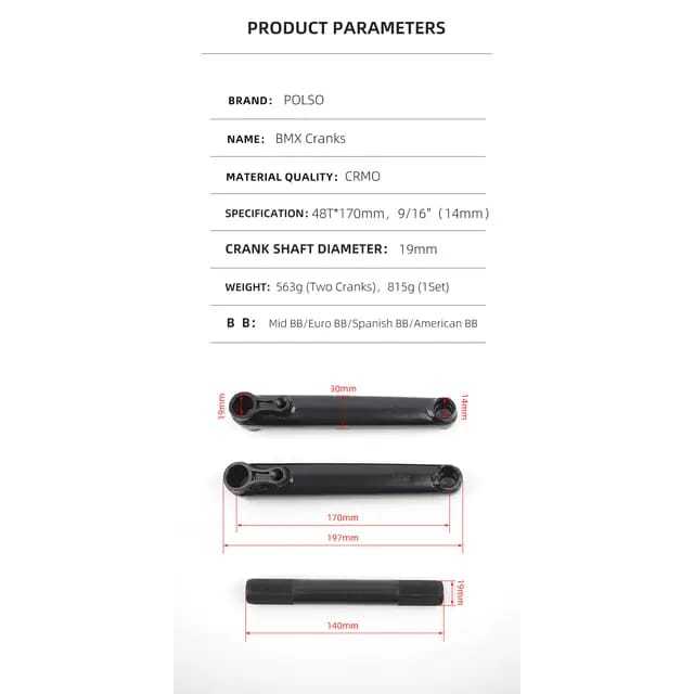 Polso Crank Crankset Sepeda BMX DJ Bike 170mm
