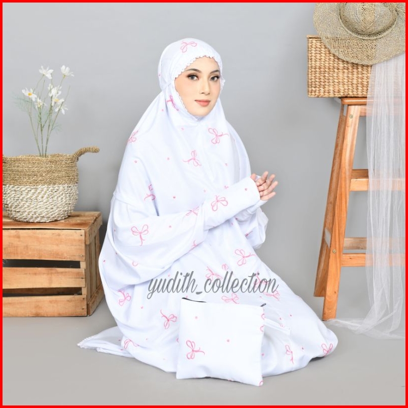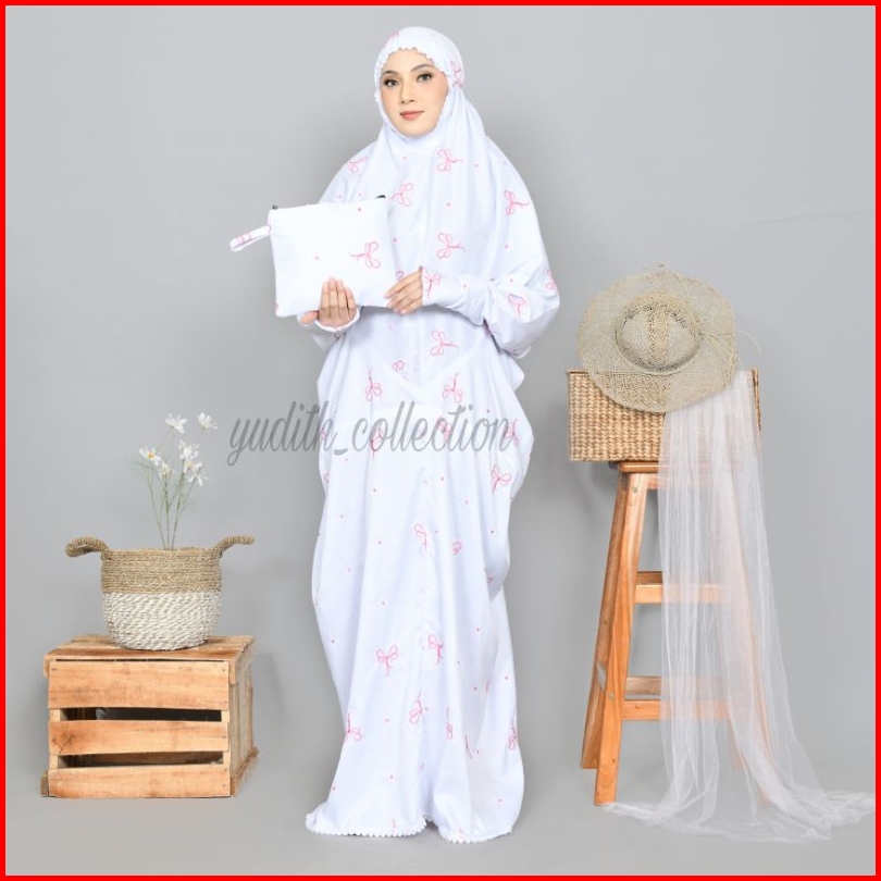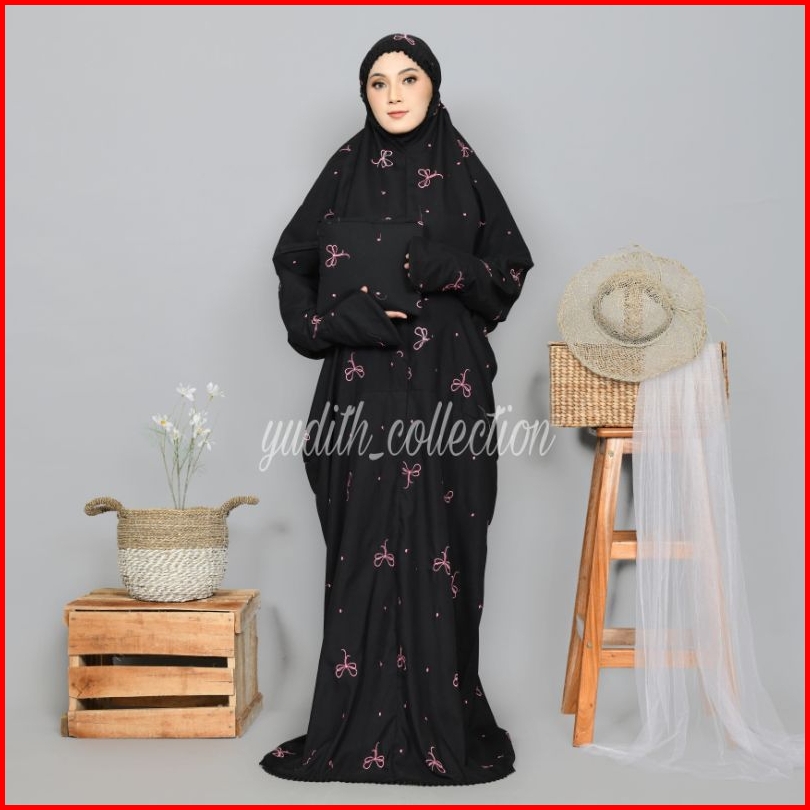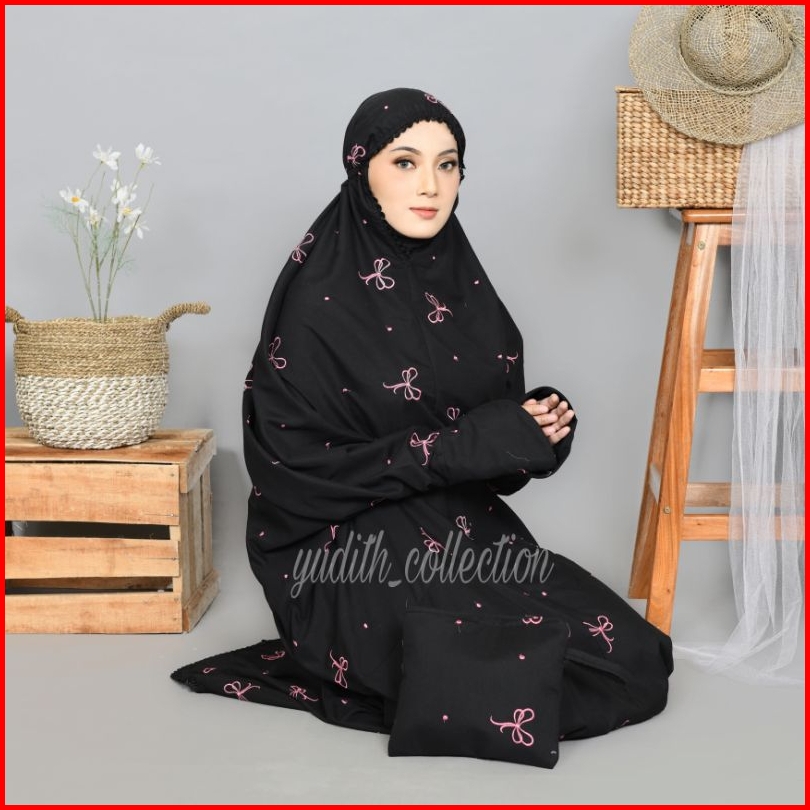 Yudith - Mukena Terusan Dewasa Bordir Pita Ammara Katun Premium Free Tas