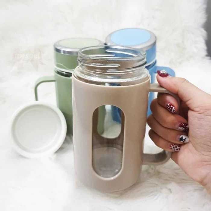 Gelas Kaca Gagang / Gelas Shell 500 ML Kemasan Box/Cangkir Minum Motif Kotak/Mug Cangkir