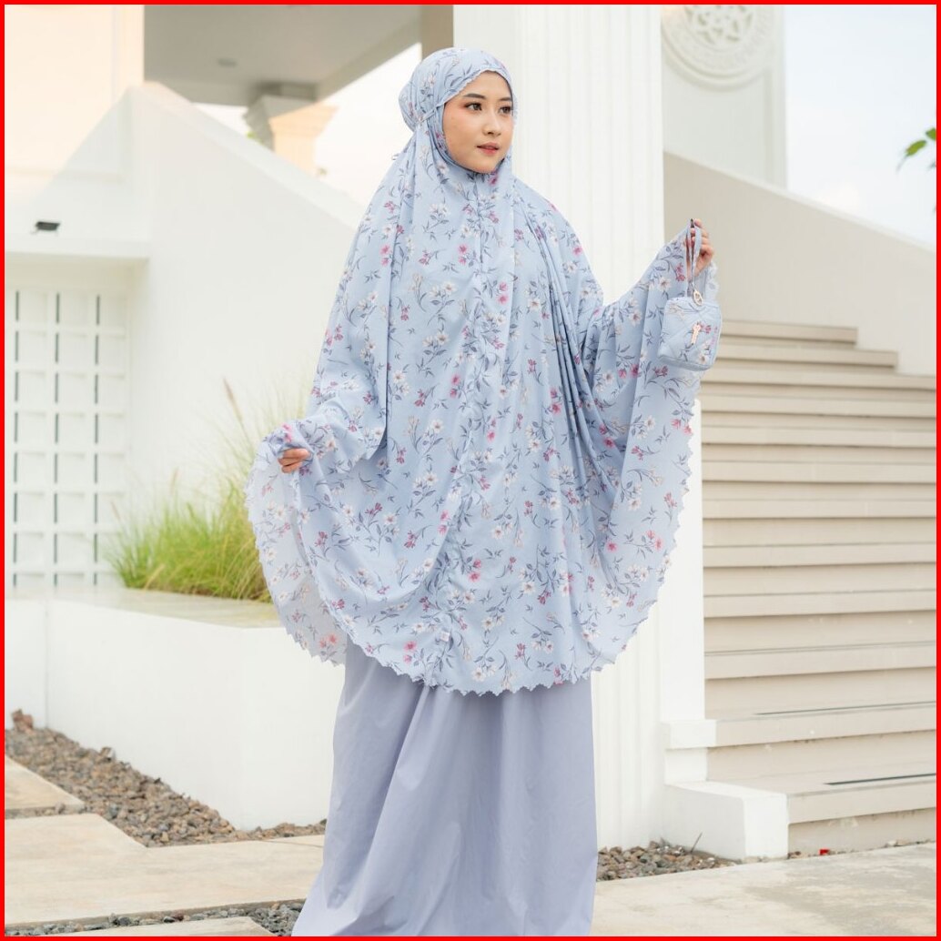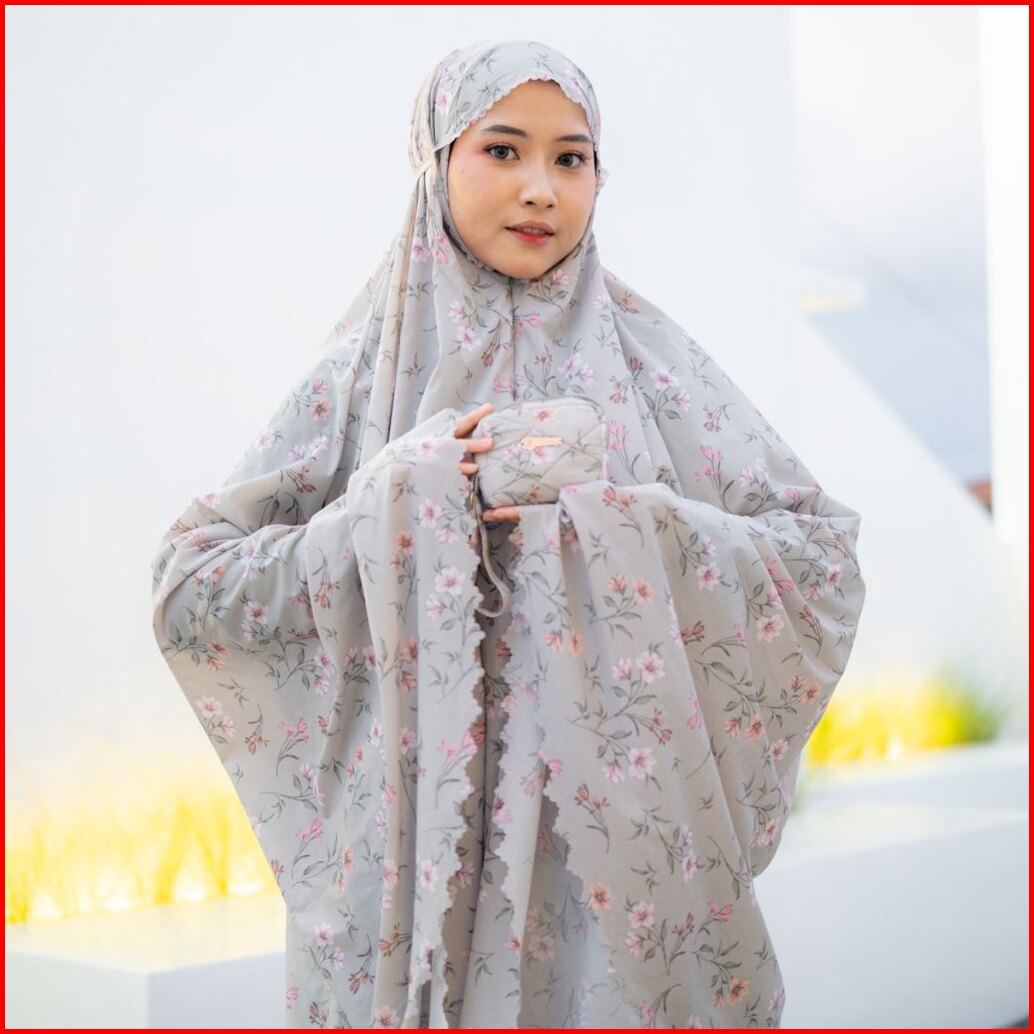 Mukena Travel Mini Pouch Resleting Dagu Parasut Motif Kombinasi Finishing Lasercut