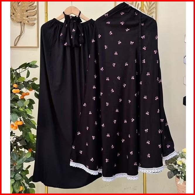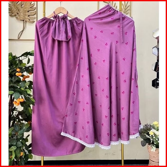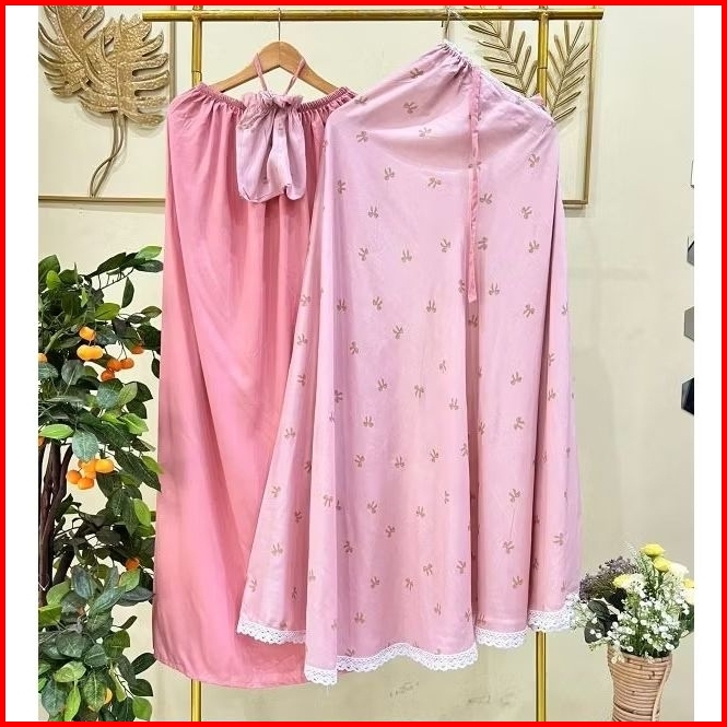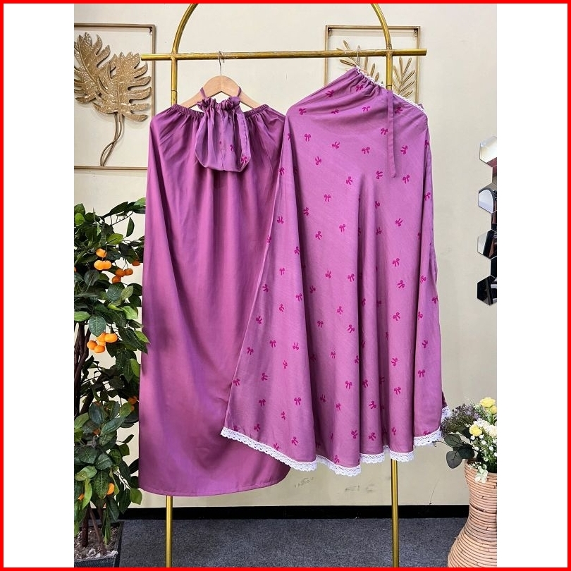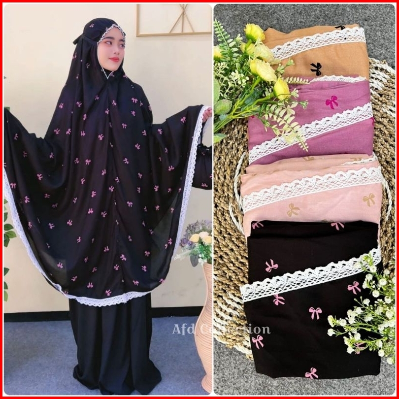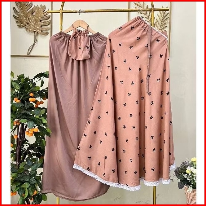 Mukena Rayon Dewasa Motif Pita Series Coquette Free Tas Cantik Rayon Printing Kerut Kening