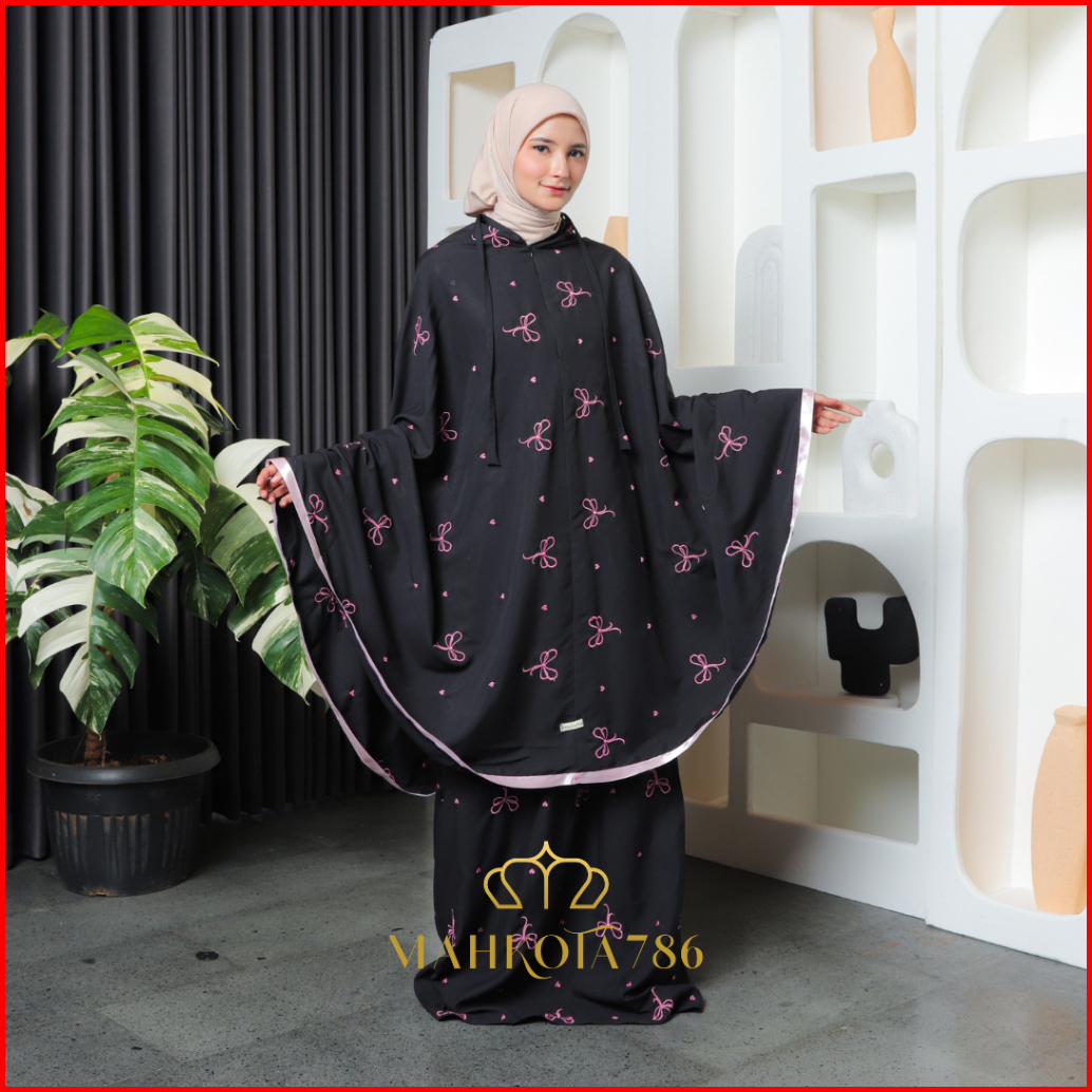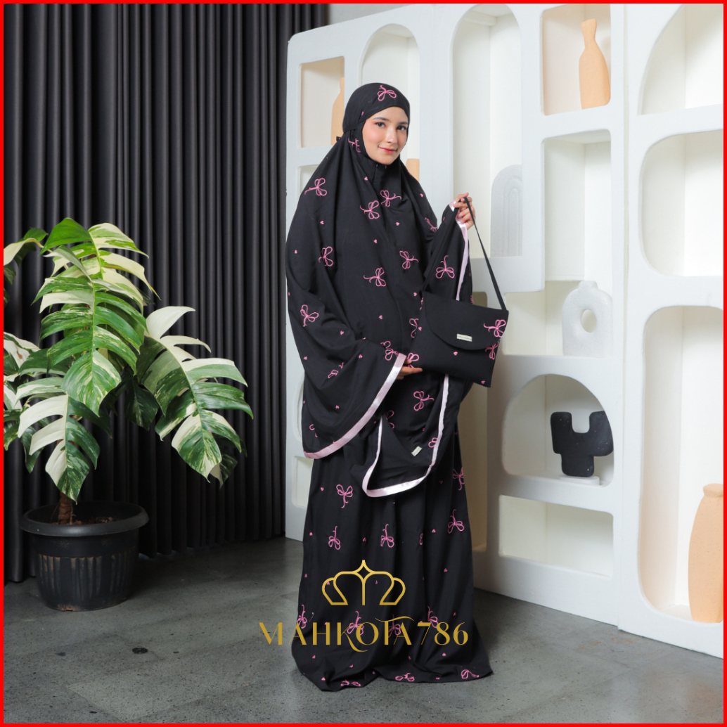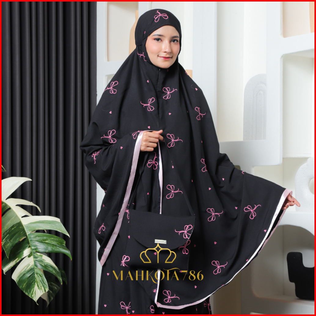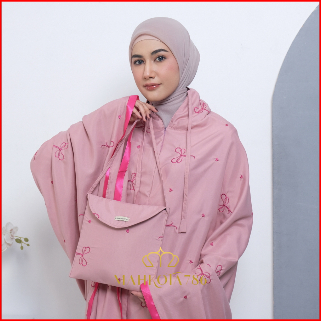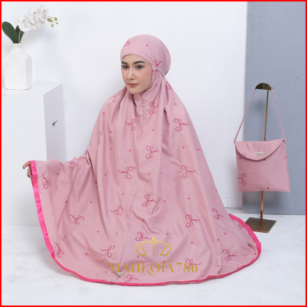 Mahkota786 - Mukena Coquette Mukenah Dewasa Pita Pink 2in1 Sultan Aesthetic Ribbon Remaja Bahan Adem Bordir Mewah Jumbo