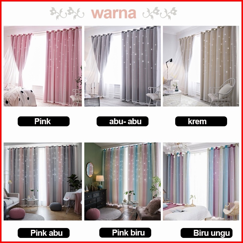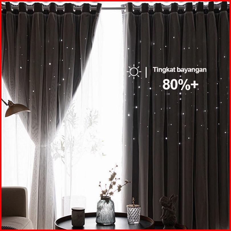 Gorden Jendela 90 Blackout Gradien Lapisan Dua Tirai Ring 12 Semokring Bulat Gordeng Minimalis Star Curtain