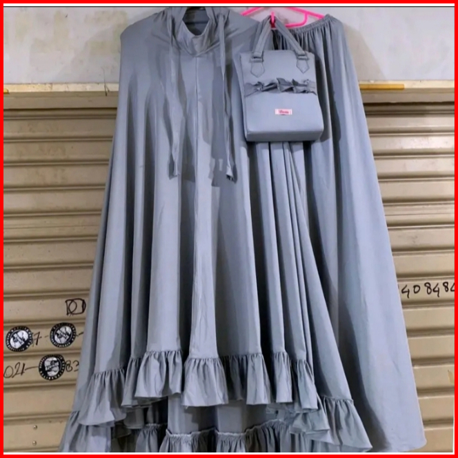 Mukena Dewasa Jersey Premium Rempel Mewah Syar I Malaysia Menutup Dagu Super Jumbo