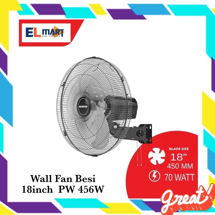 Maspion Power Fan 18 Inch Kipas Angin Dinding PW 456W Tembok Besi 18inch Wall Fan 456 PW 456W
