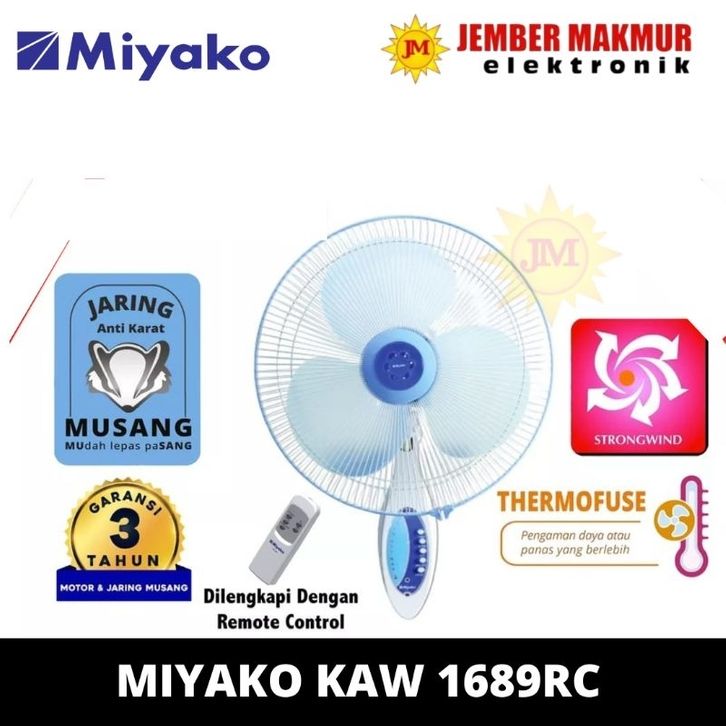 Miyako KAW-1689 RC GB Wall fan Kipas Angin Dinding dengan Remote Control