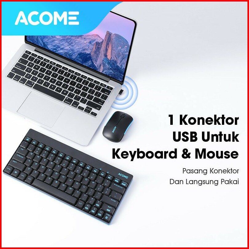 Acome Keyboard Mouse Wireless Portable 1600 Dpi Tombol Silikon Garansi Resmi 1 Tahun Akm2000