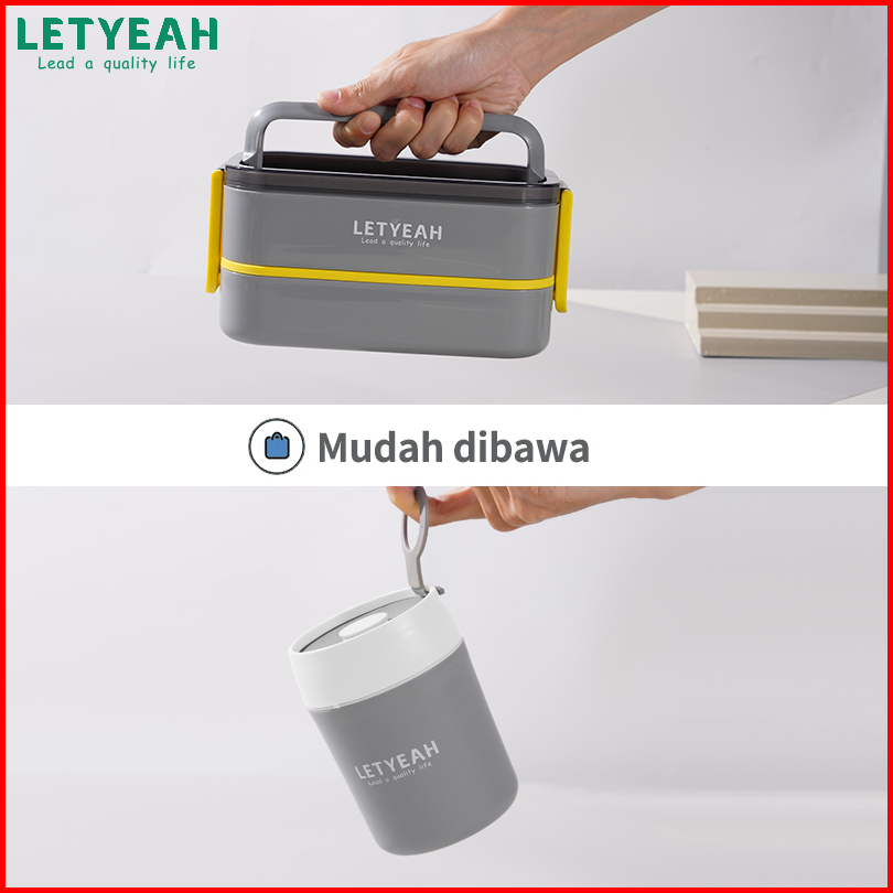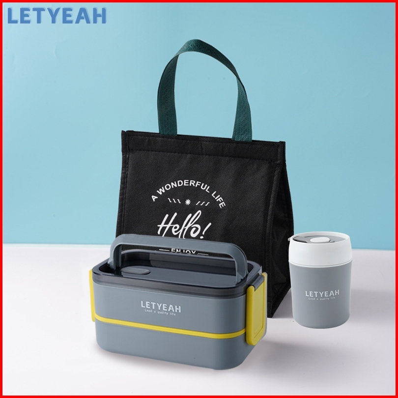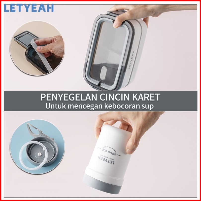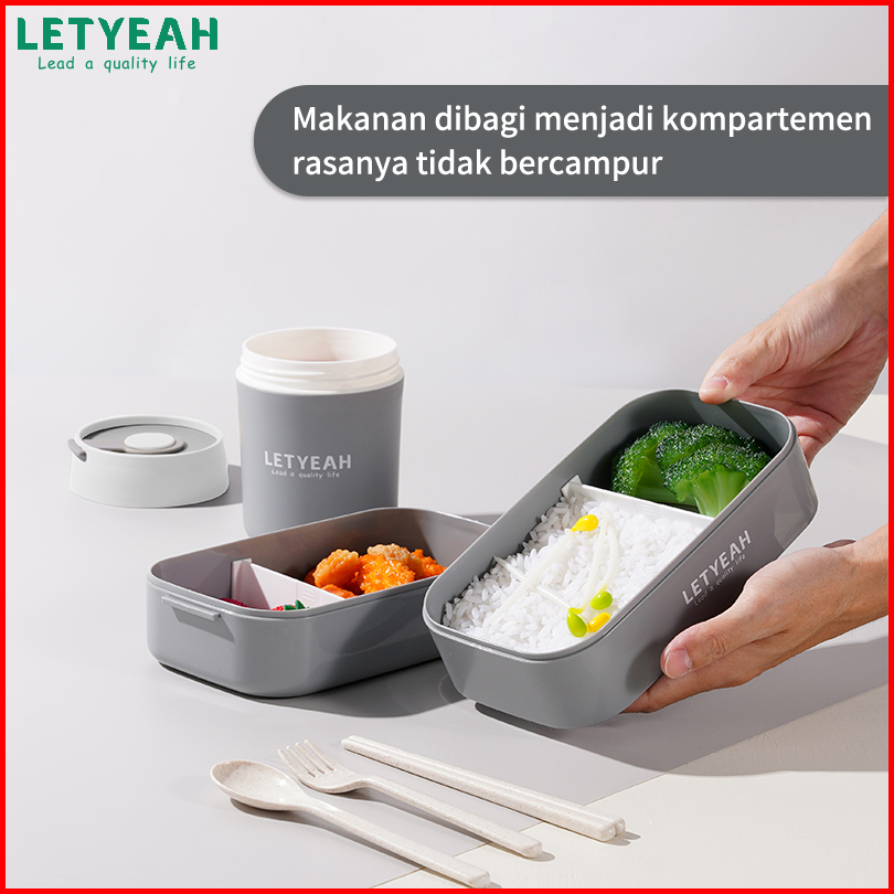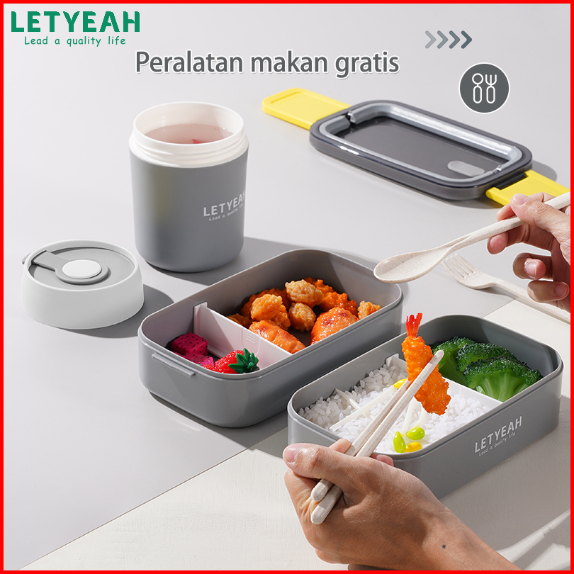 Letyeah Lunch Box Set Dengan Mangkuk Sup Portabel Tas Bekal Set 1600ml Kotak Makan Set Tempat Bekal Makan Anti Tumpah Bp