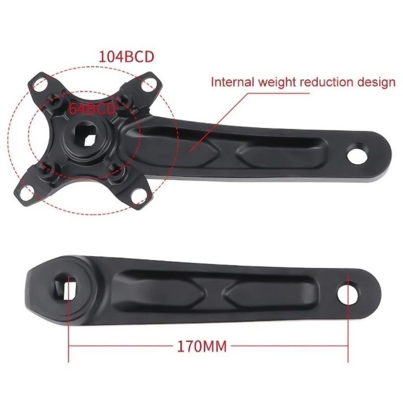 IXF Crankset Single Crank Arm 170mm Square Kotak BCD 104 Merah Hitam