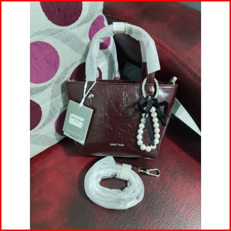 Tas Premium Kangtaina Mini Tote Maroon Handbag Sling Bag