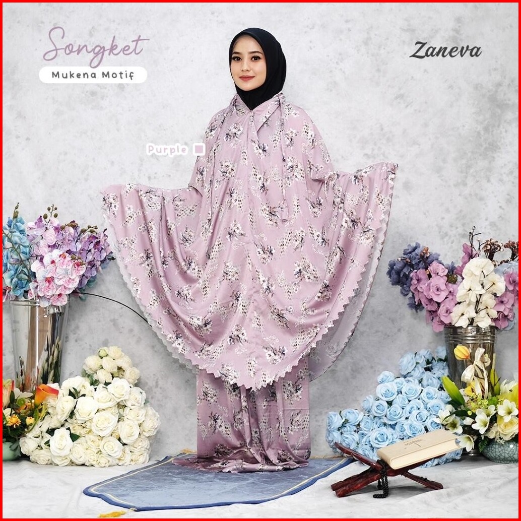 Zaneva - Mukena Motif Armany Silk Aster Songket By Zaneva Mukena Motif Printing Armany Silk