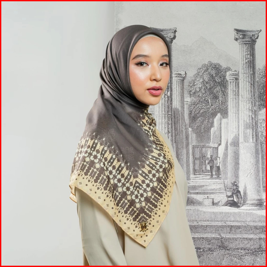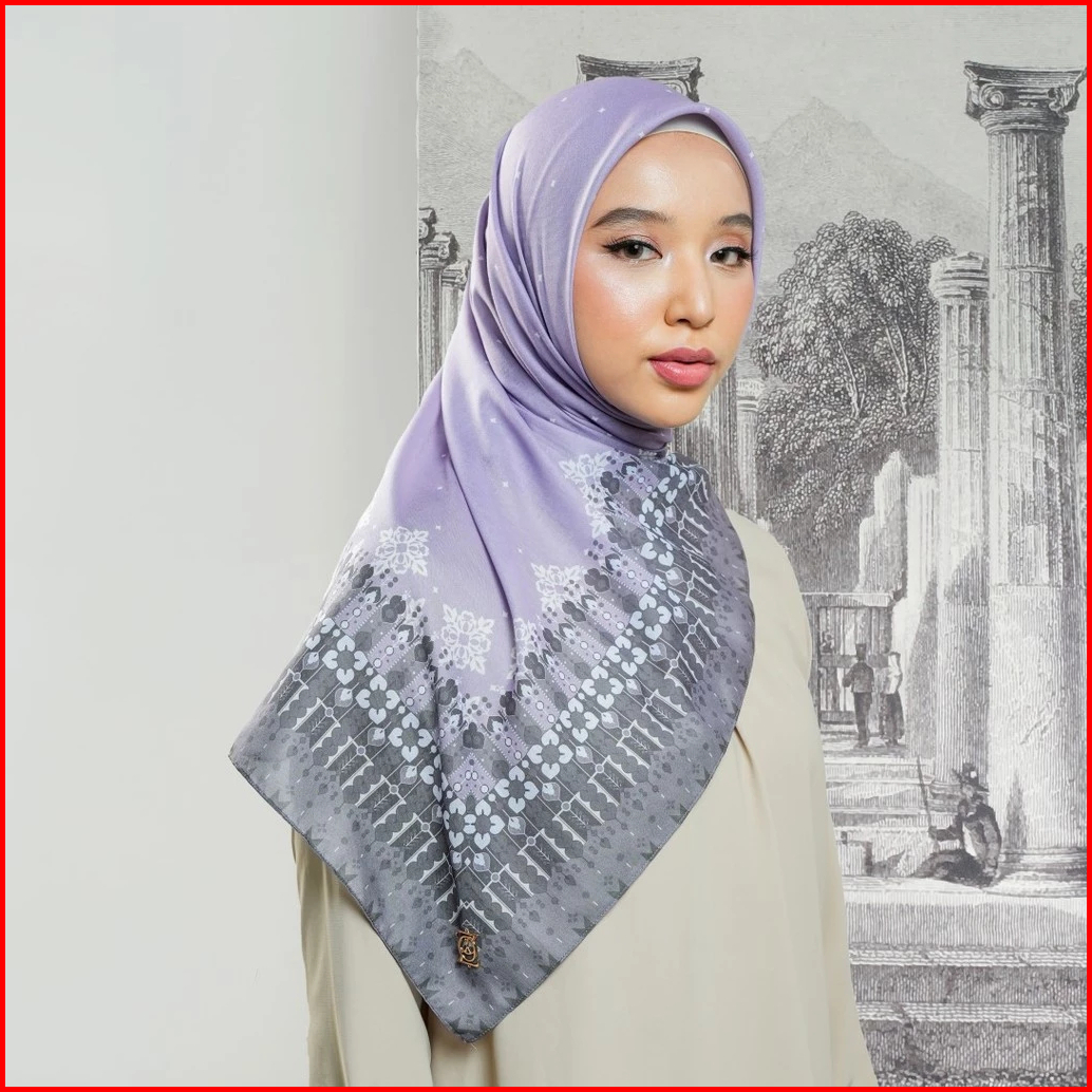 Zoya Ranu Scarf - Kerudung Hijab Segiempat Motif With Box - Bahan Nesla - Ukuran 115x115