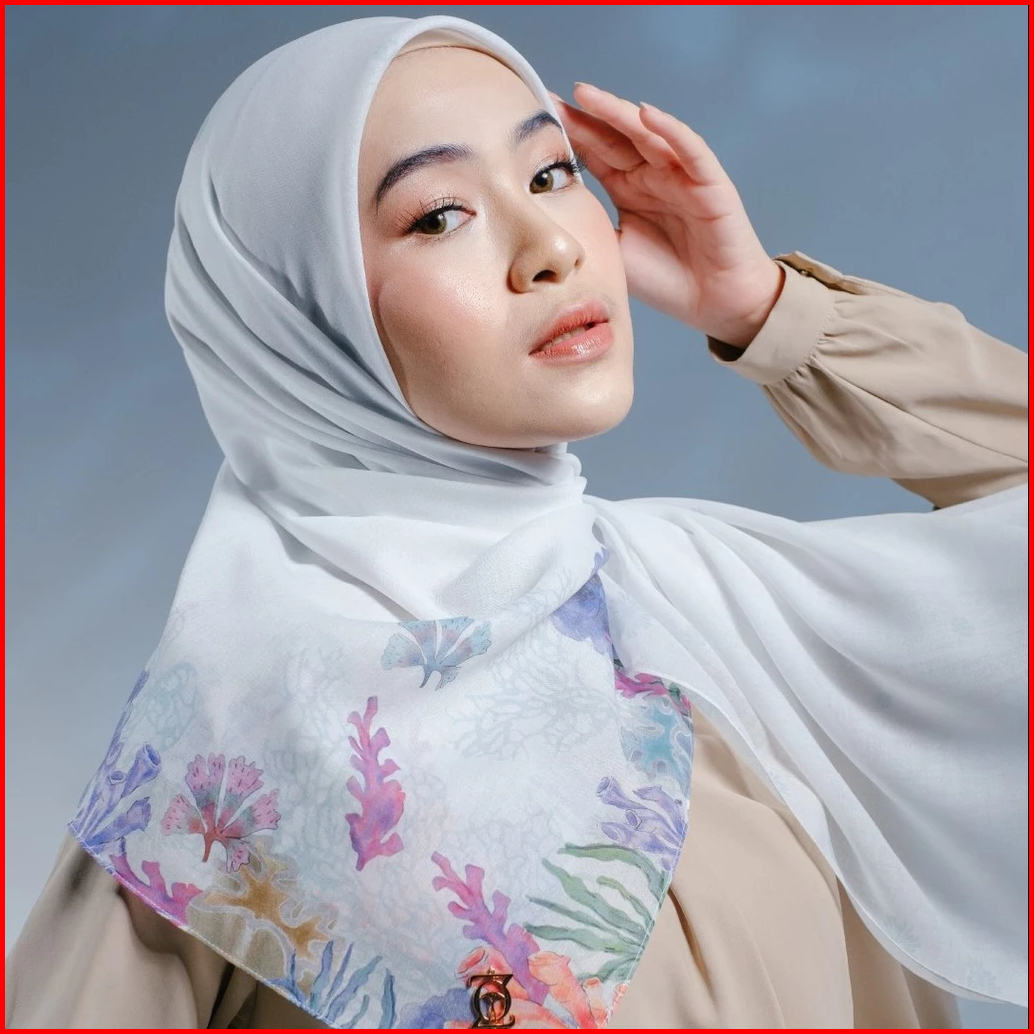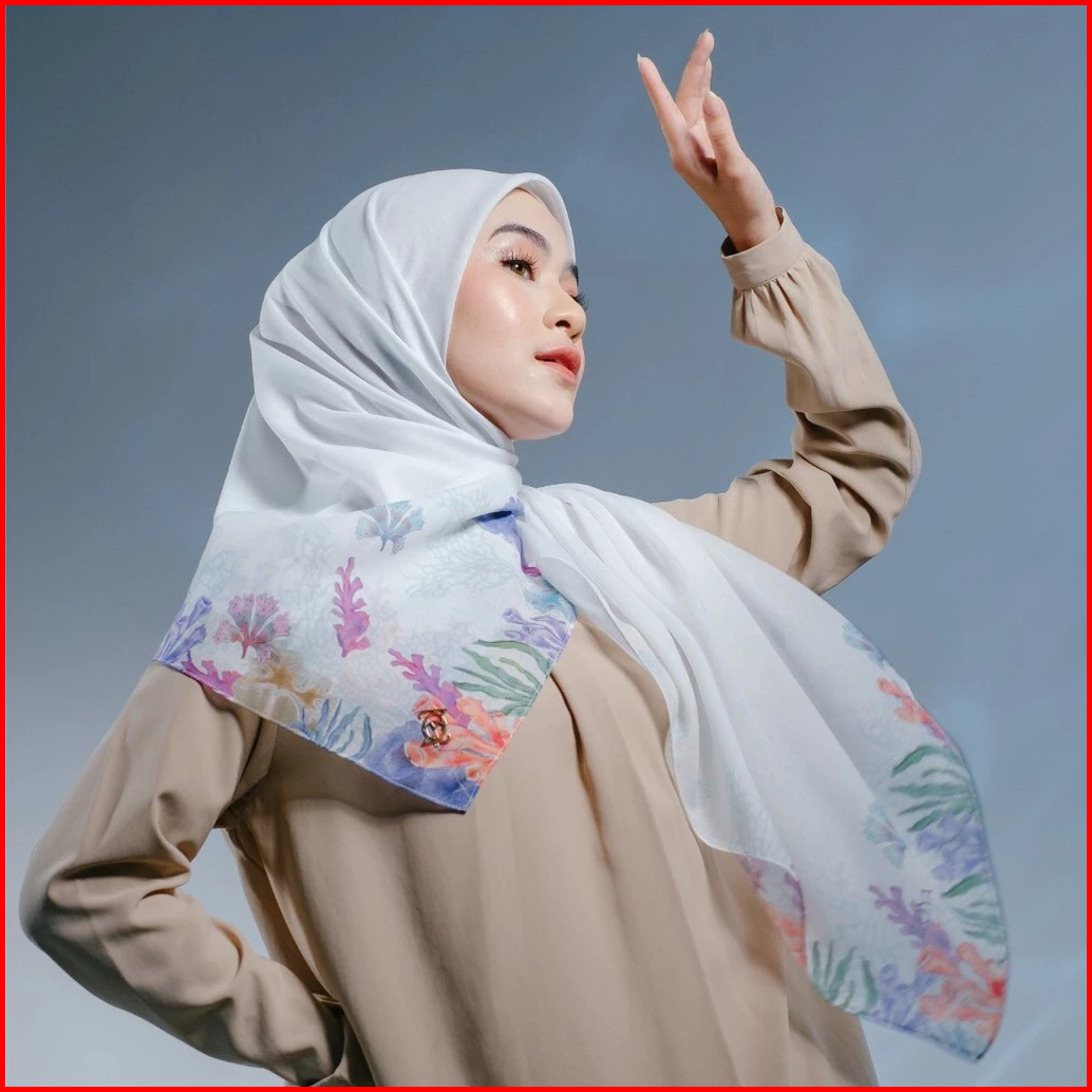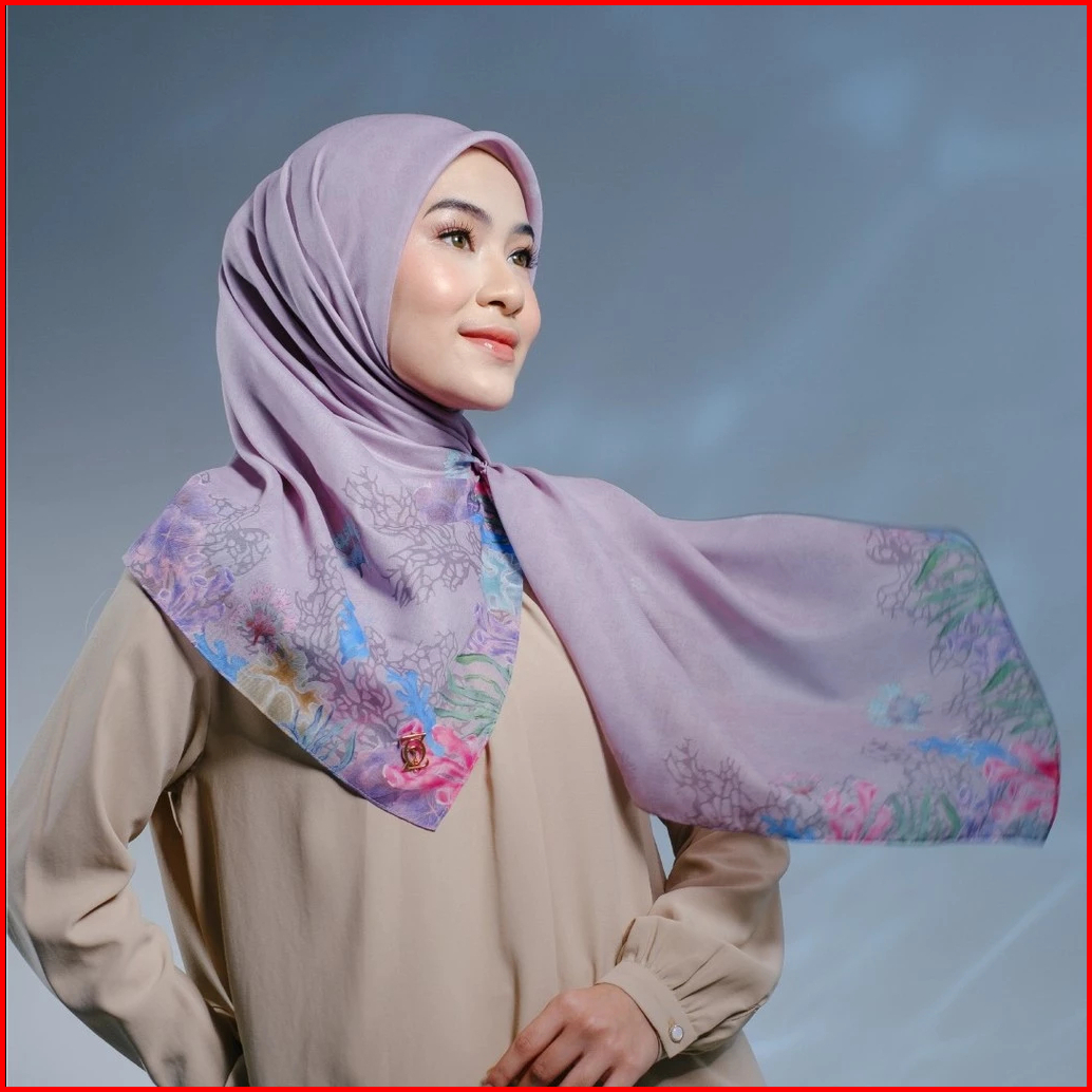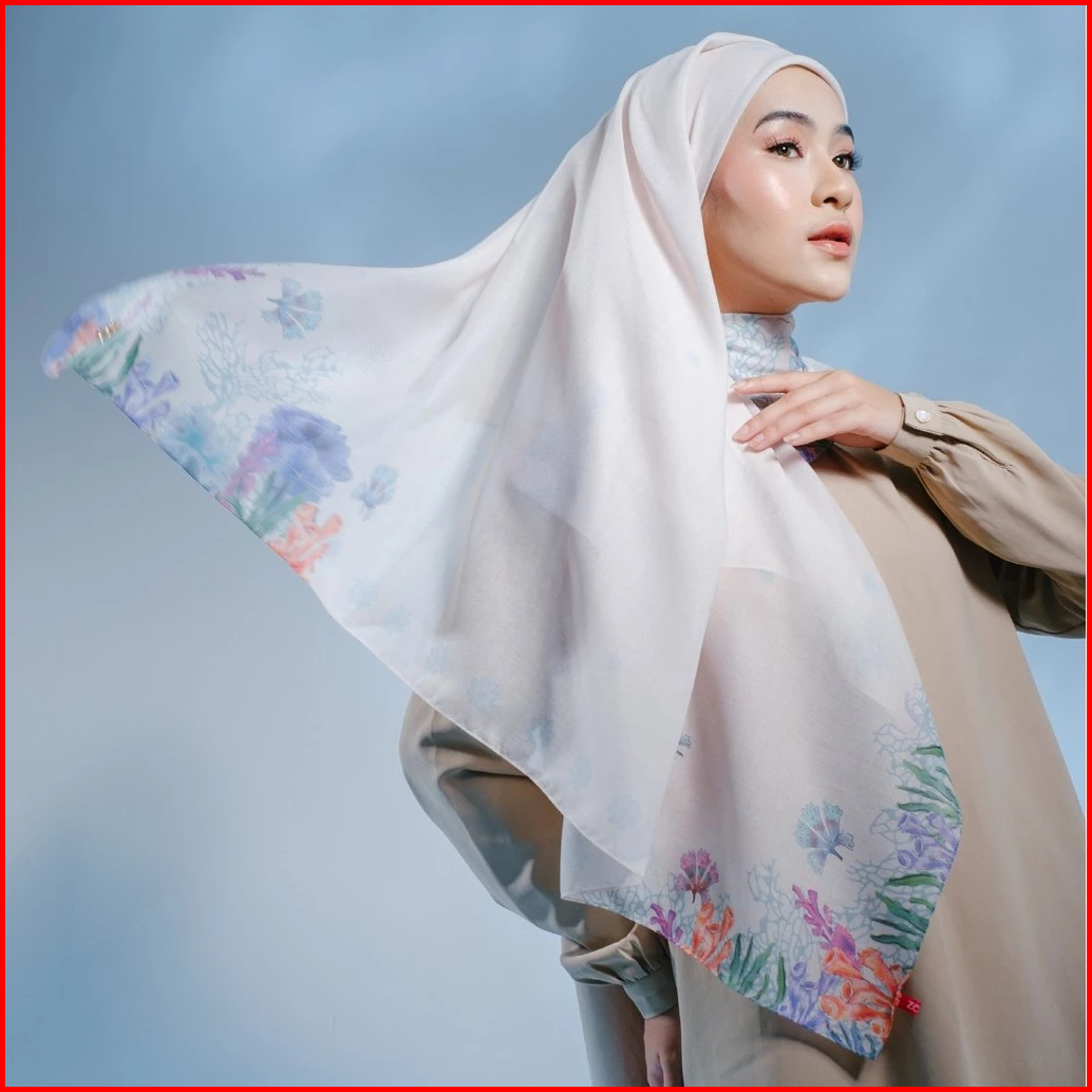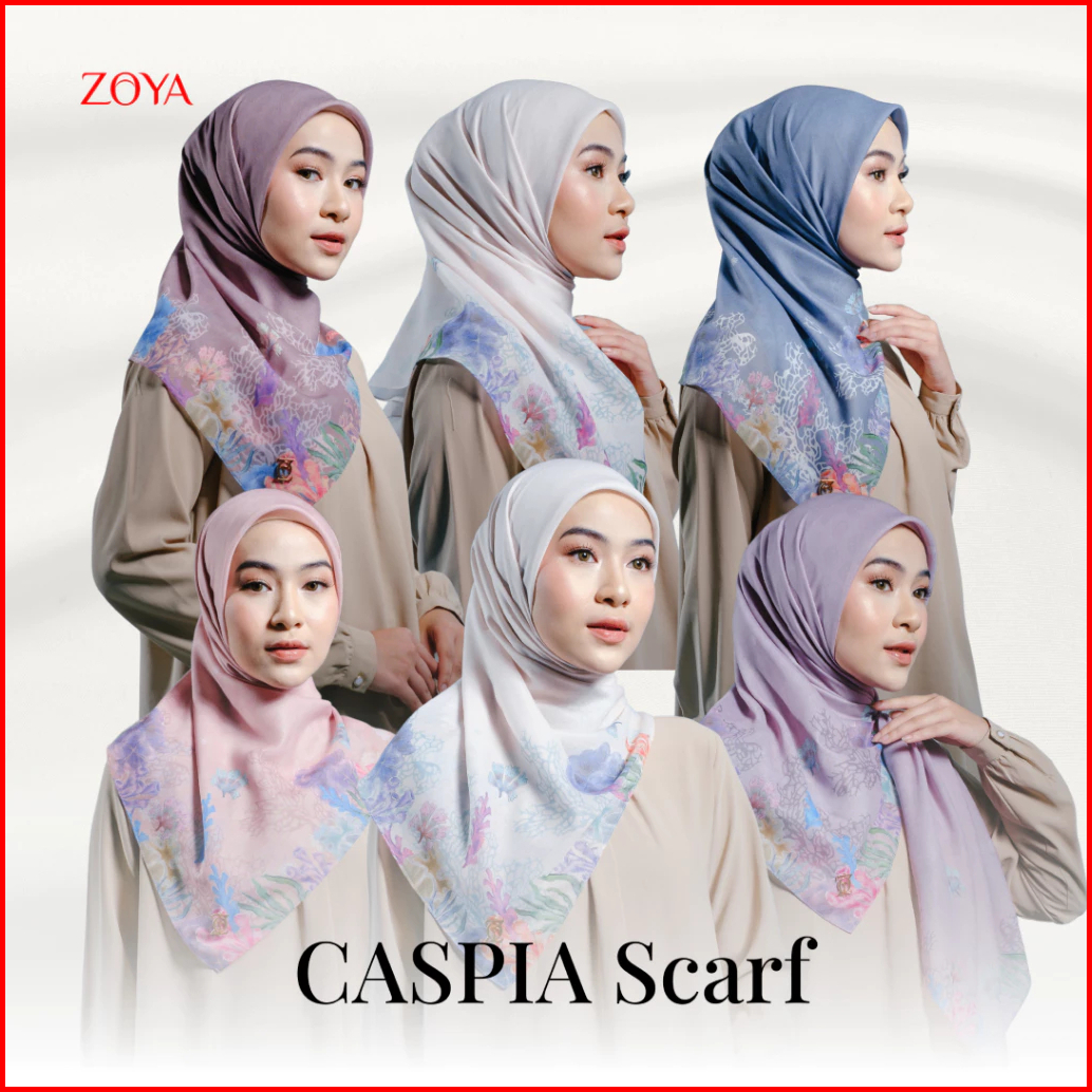 Zoya Caspia Scarf - Kerudung Hijab Segiempat Motif With Box - Bahan Nesla - Ukuran 115x115