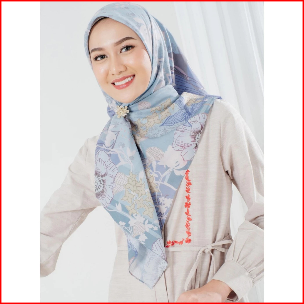 Zoya Almona Scarf - Kerudung Hijab Segiempat Motif With Pouch - Bahan Poly Fine - Ukuran 110x110
