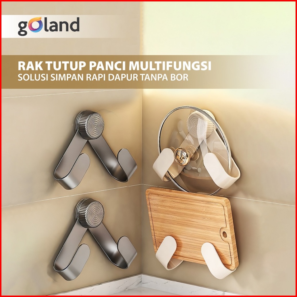 Goland Rak Tutup Panci Dengan Cangkir Hisap Rak Penyimpanan Dapur Multifungsi Rumah Tangga Tanpa Lubang Rak Talenan Rak