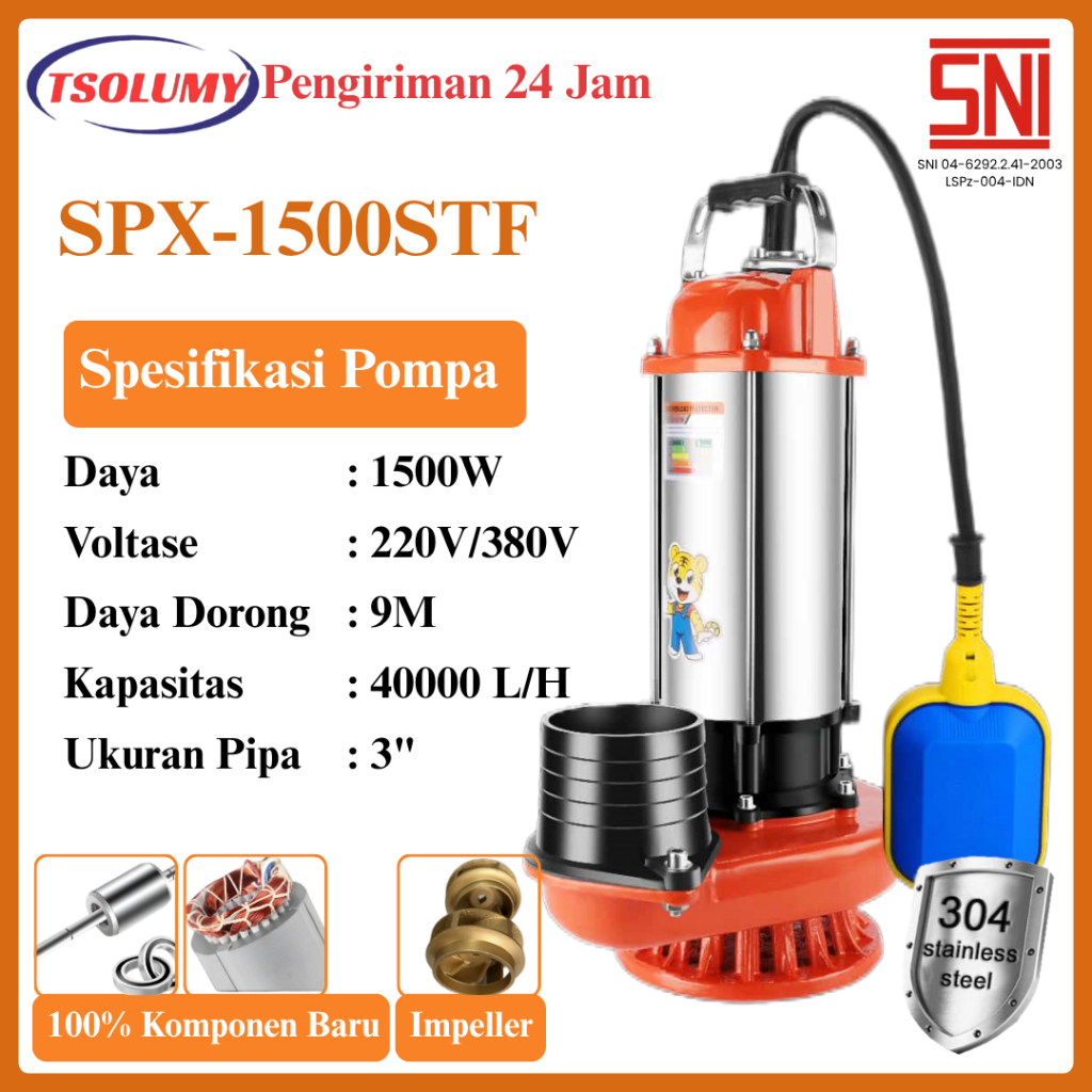 Tsolumy Pompa Celup Air Kotor Otomatis SPX-1500STF Stainless Steel 3in Banjir Pompa Limbah Pompa Air