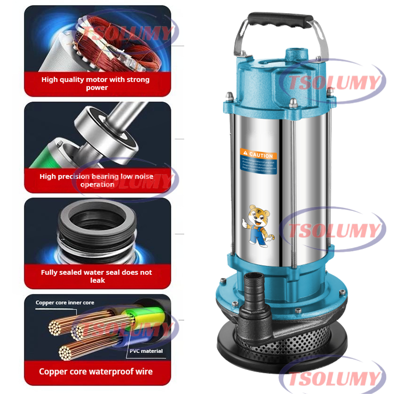 Tsolumy Pompa Celup Air Kotor SPX-370ST Blue Stainless Submersible Pump 1 Inch Pompa Kolam lkan