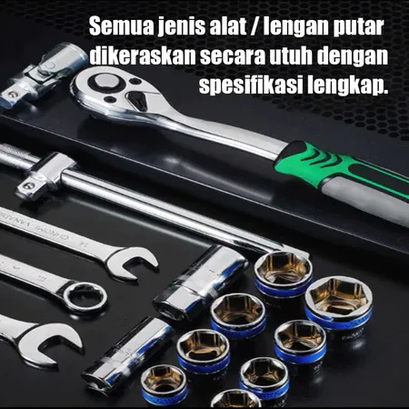 Reaim Kunci Sock Set Kunci 216 PCS Tool kit Set Kunci Shock Drive Socket 1/2 Inch Socket Wrench Set Chrome Vanadium Kunc