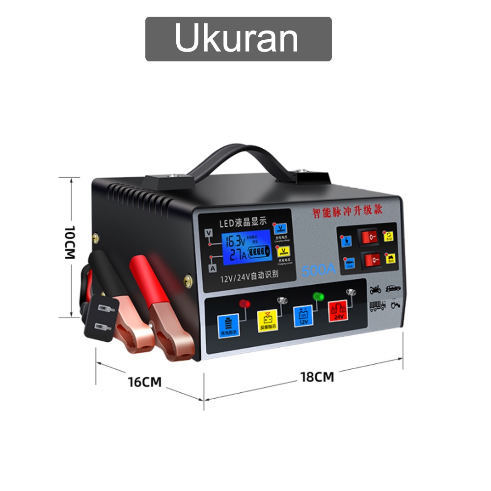 Charger Aki Otomatis Smart Intelligent Auto Repair Mobil Motor Kapal Truck Portable 700W 12V/24V 300AH 500AH