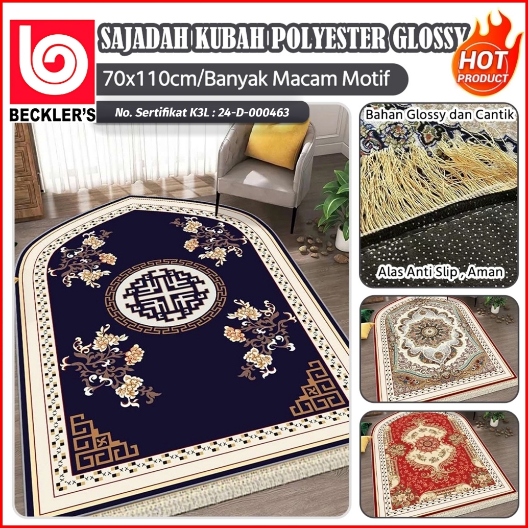 Beckler S Sajadah Kubah Polyester Glossy 70x110cm Premium Anti Slip Perlengkapan Sholat Umroh