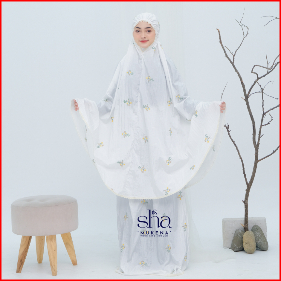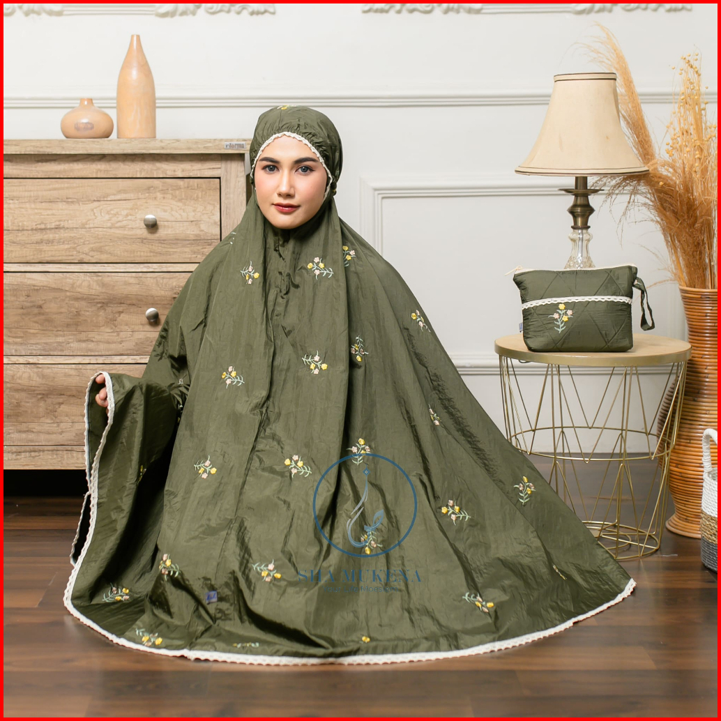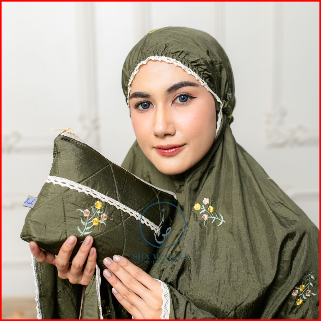 Sha - Mukena Travel Parasut Crinkel Premium Motif Bordir Bunga Shanum Series