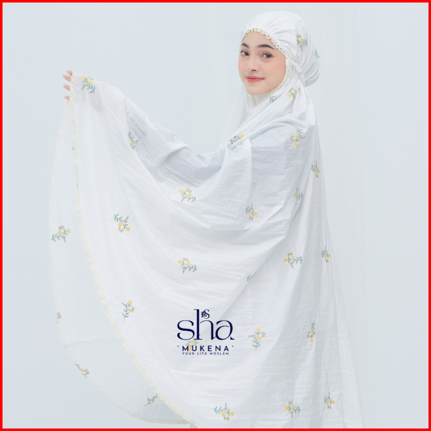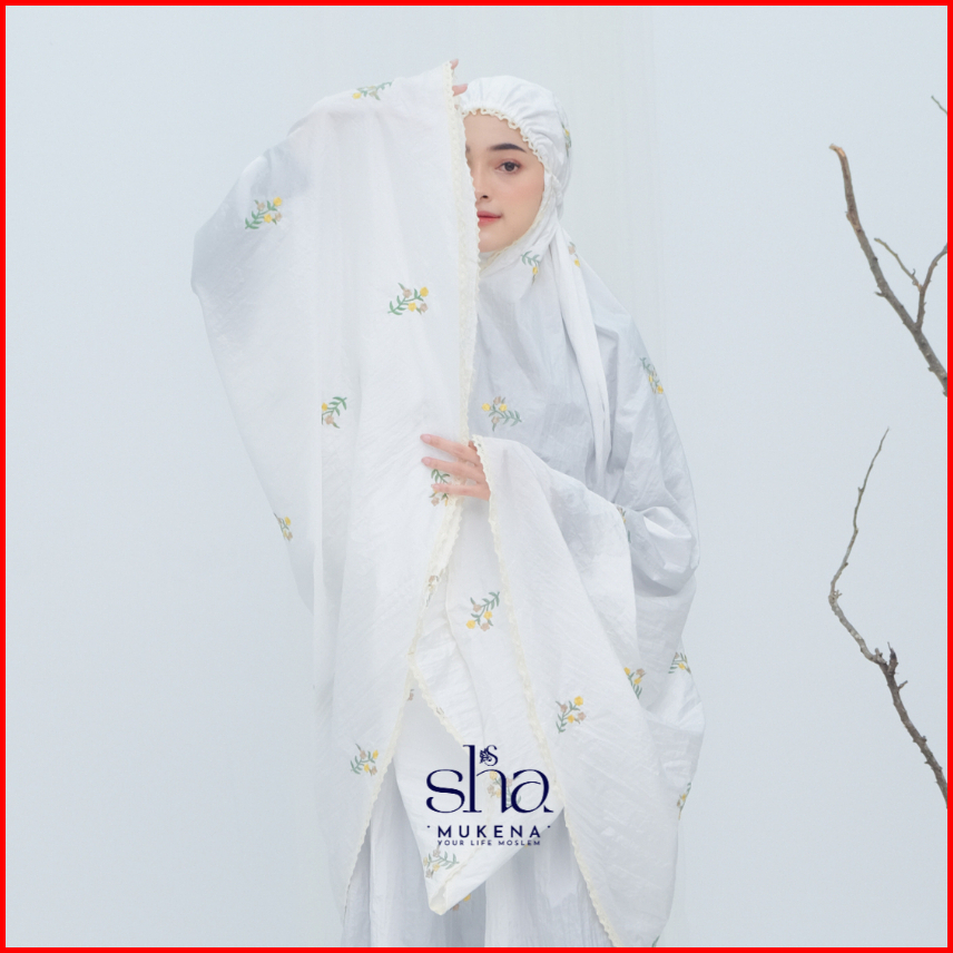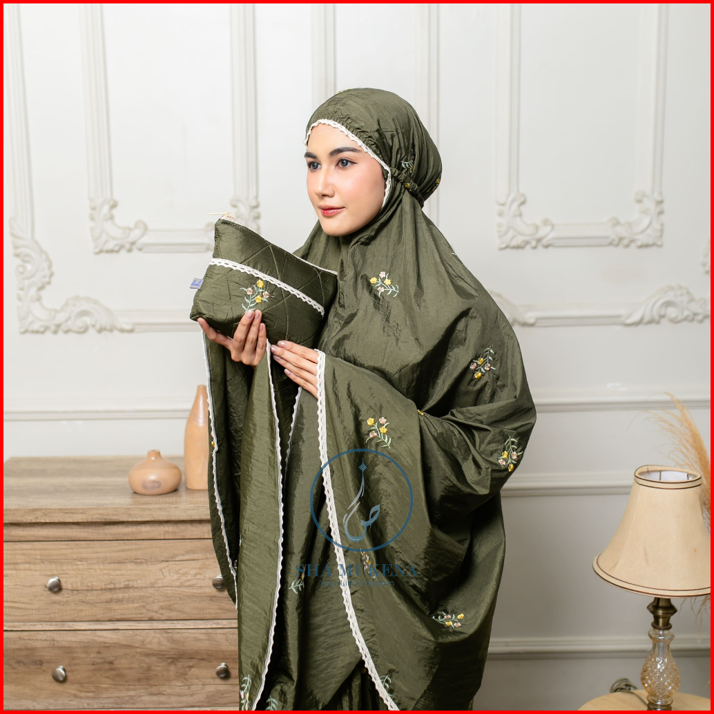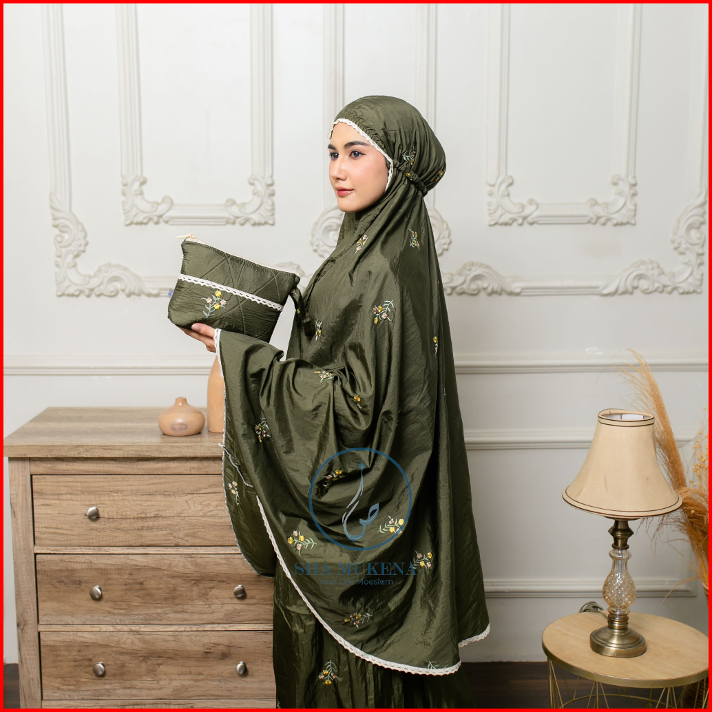 Sha - Mukena Travel Parasut Crinkel Premium Motif Bordir Bunga Shanum Series