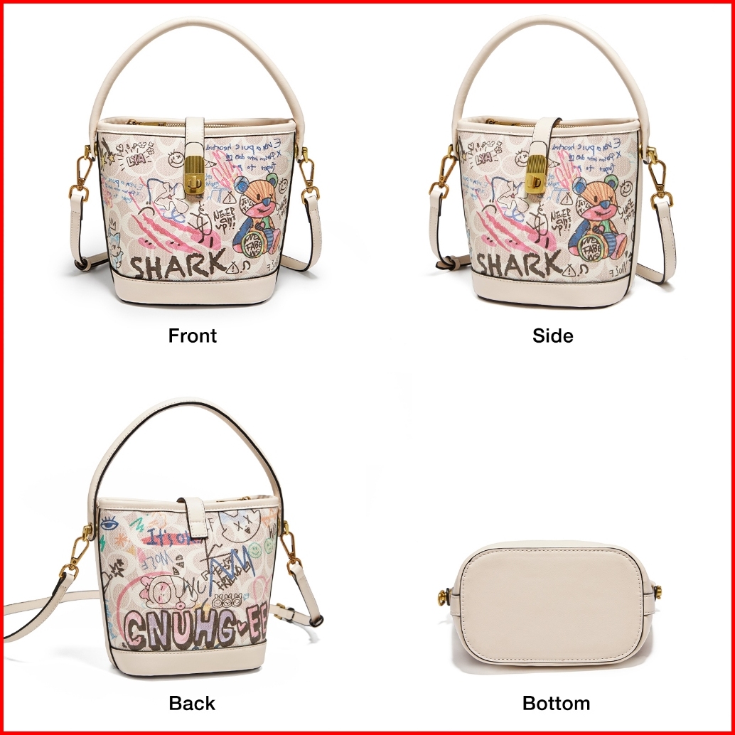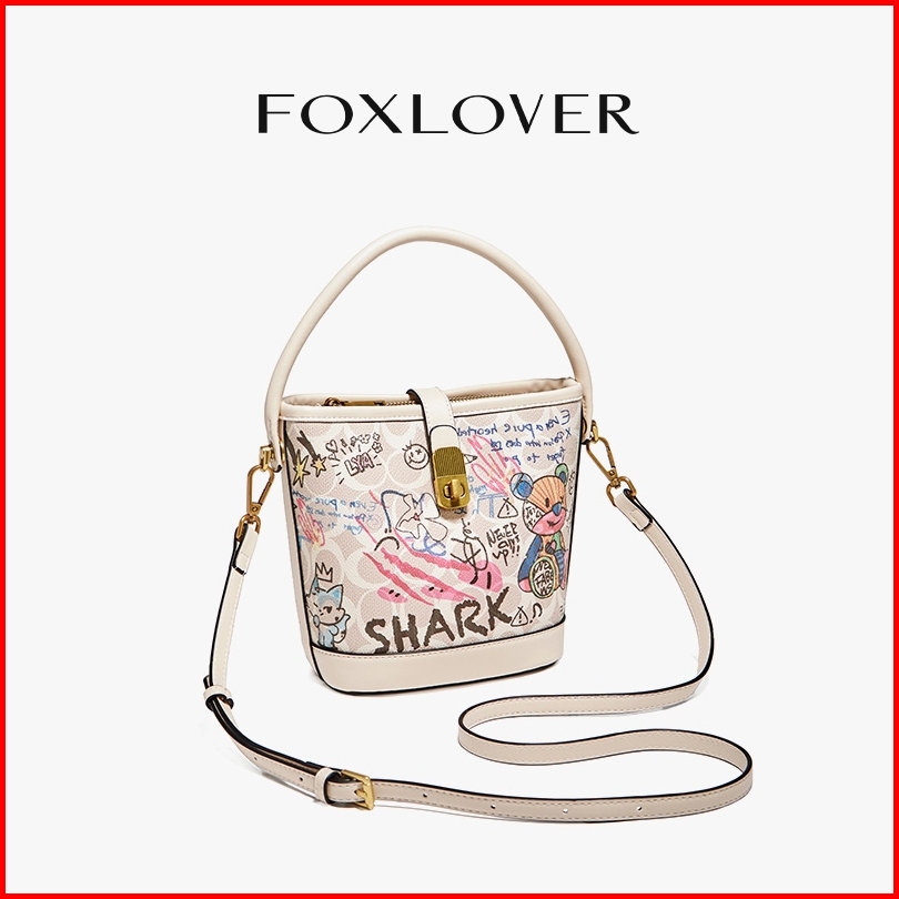 Foxlover Tas Selempang Wanita Mewah Gaya Graffiti Bucket Bag Dengan Tali Bahu Tunggal