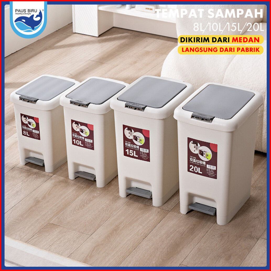 Paus Biru - Tempat Sampah Plastik Tertutup Tong Sampah Injak 8l 10l 15l 20l Trash Bin Toilet Dapur
