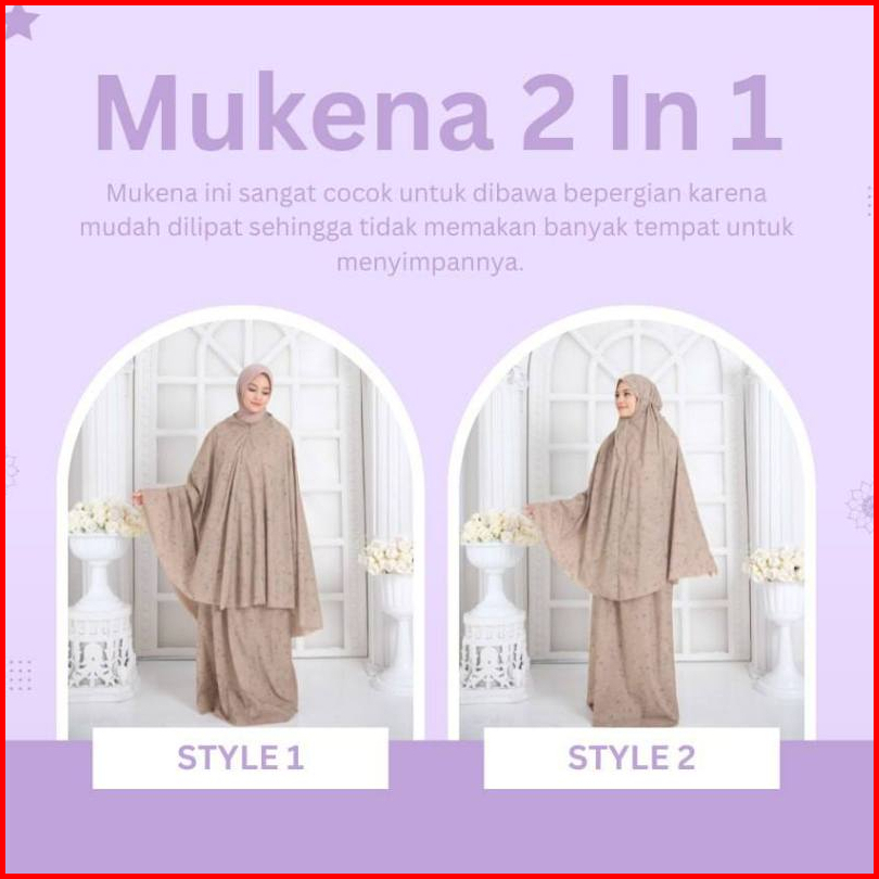 Milyarda Mukena Travel Motif 2 In 1 Dewasa Telekung Set Bahan Parasut Premium Korea