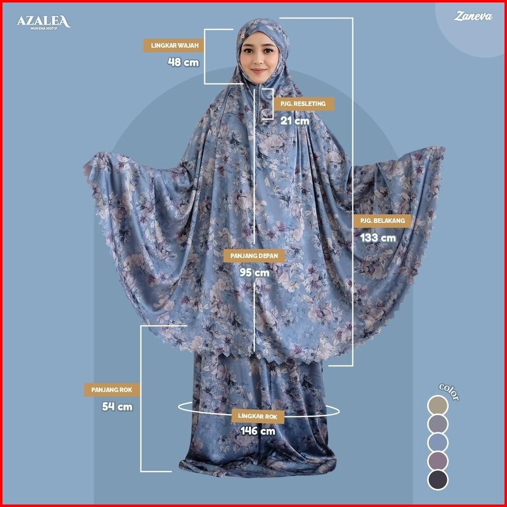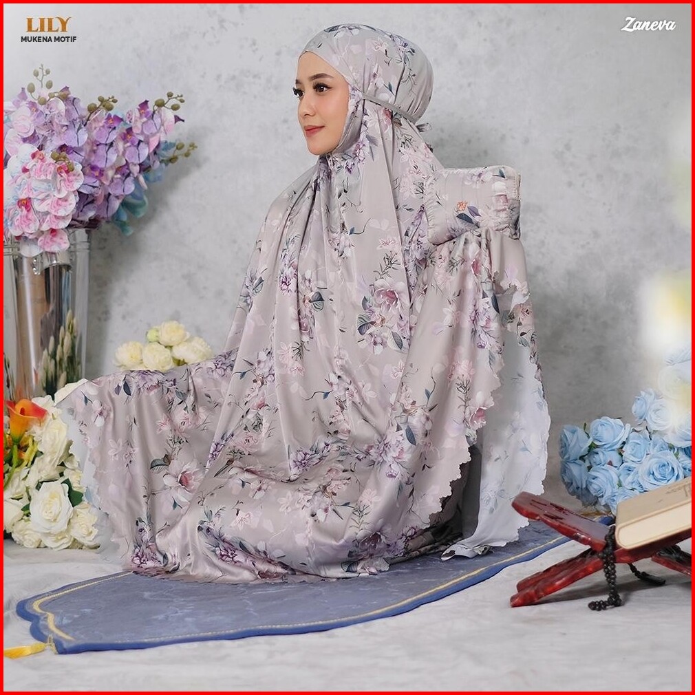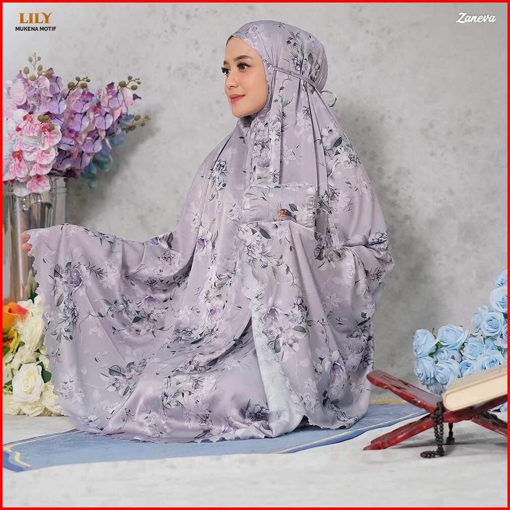 Zaneva - Mukena Motif Armany Silk Lily Azalea By Zaneva Mukena Silk Premium Motif Bunga Lembut