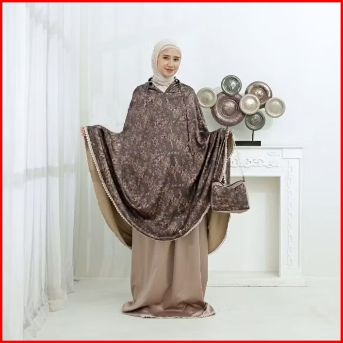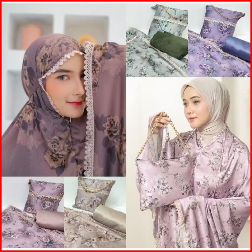 Mukena Silk Dewasa 2in1 Premium - Mukena Armani Lux - Mukena Dewasa Motif Santorini Atasan Motif Bawahan Polos