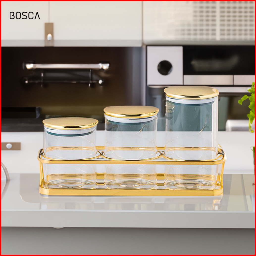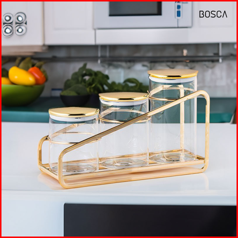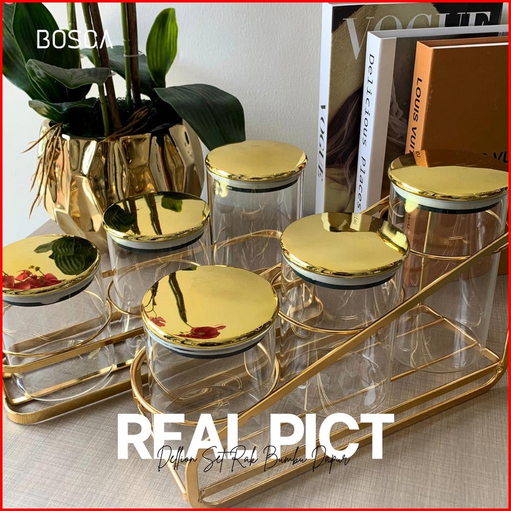 Bosca Living - Dellion Set Rak Bumbu Dapur Satu Set Toples Kaca Tutup Dengan Rak Mewah