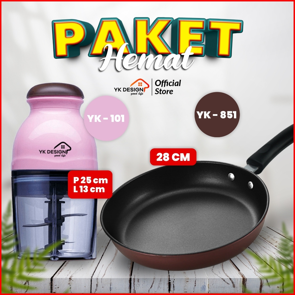Yk Design Paket Hemat 2in1 Wajan Chopper Wajan Teflon Penggorangan 28 Cm Dengan Blender Penggiling Daging Sayur Buah-bua