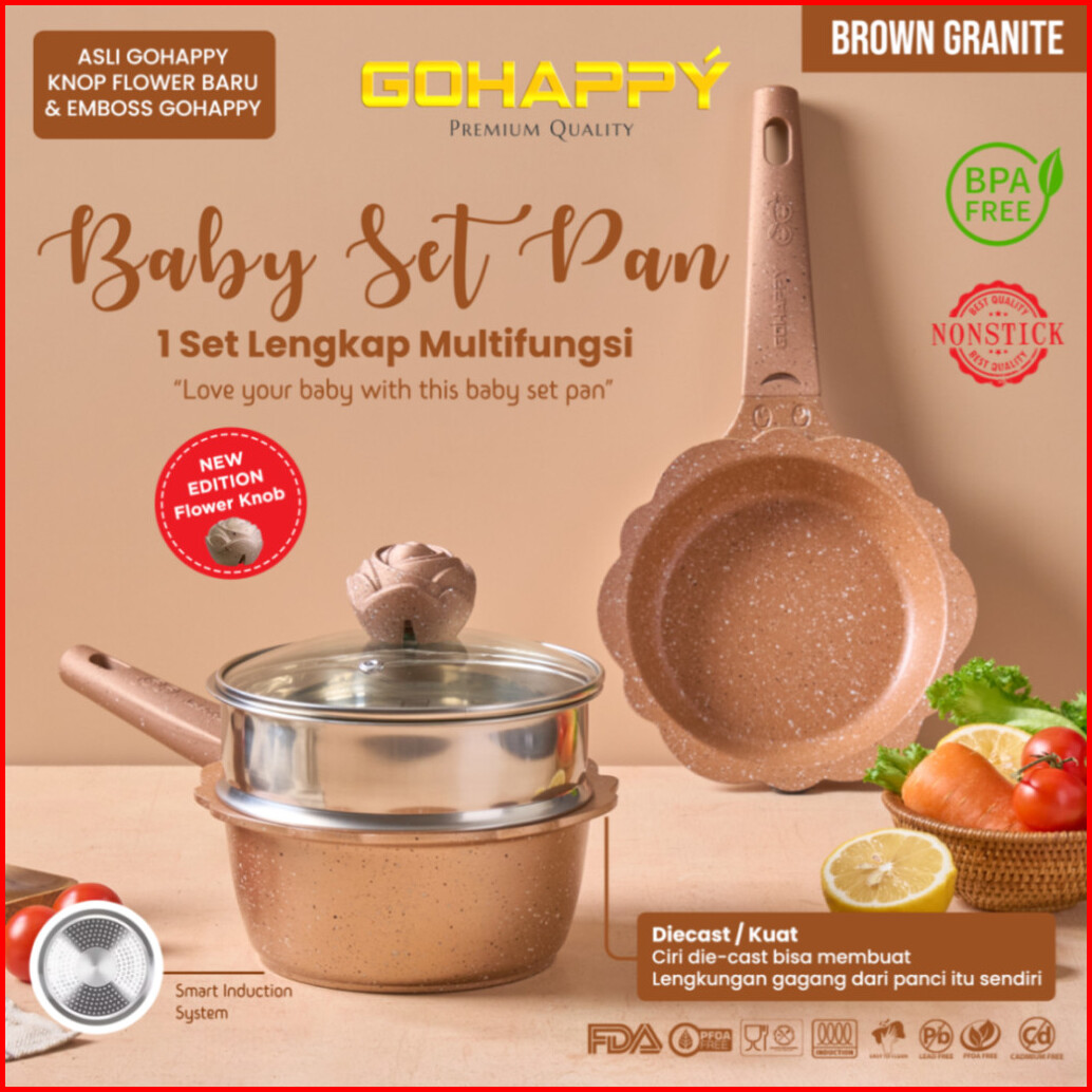 Gohappy Panci Bayi Mpasi Warna Baru Baby Pan 4 Pcs Healthy Marble - Anti Lengket - Super Tebal Aman Bebas Pfoa