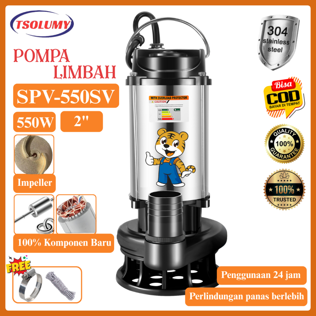 Tsolumy Pompa Celup Air Bersih Kotor 550w 2inch Stainless Submersible Sewage Pump Pompa Kolam Ikan