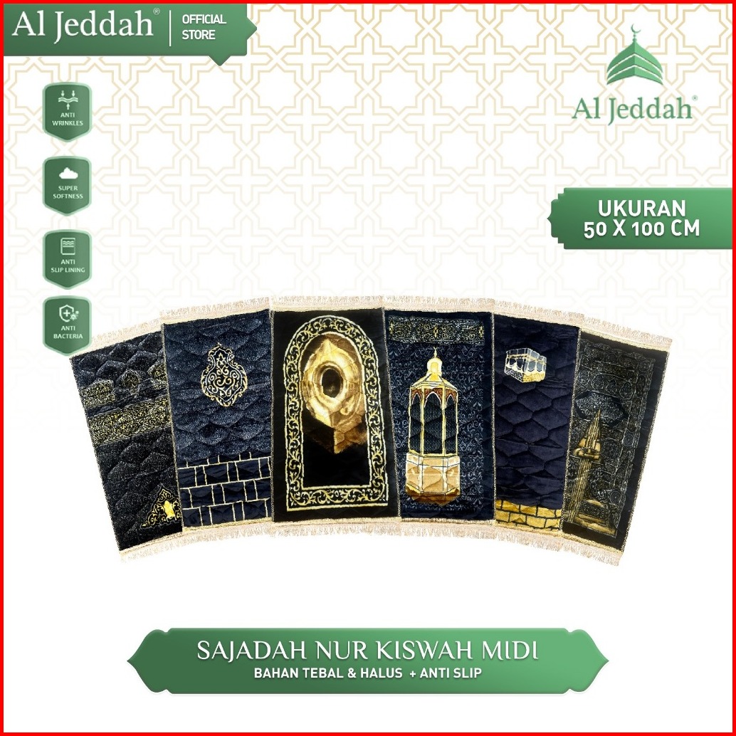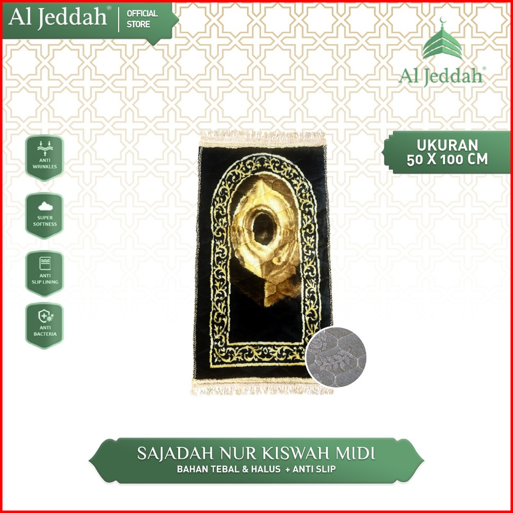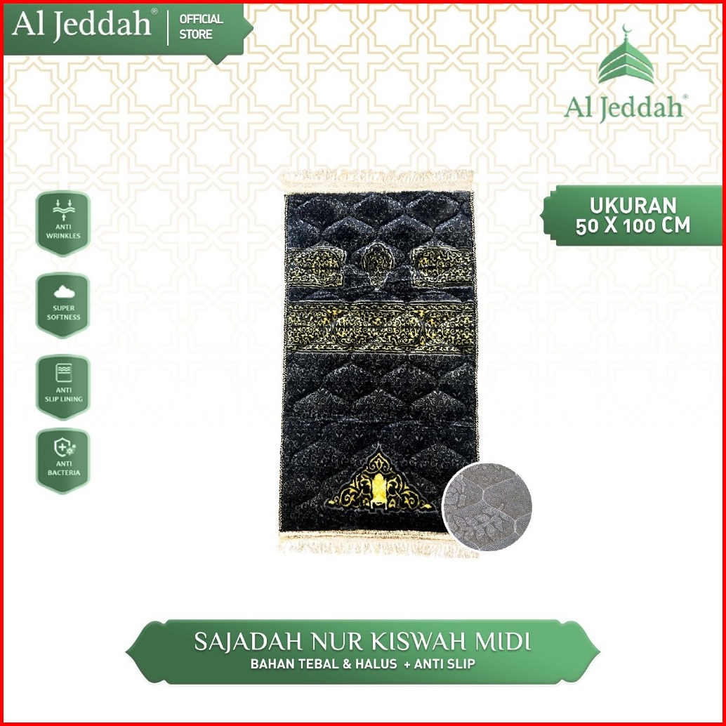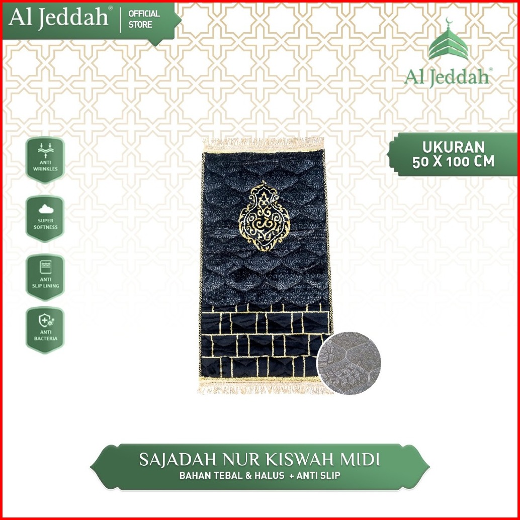 Sajadah Kiswah Midi Quilting Rumbai Hitam I Sejadah Busa Tebal 10mm Elegan 50x100 Nur Kiswah Midi Aljeddah
