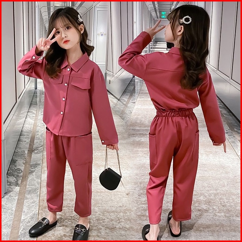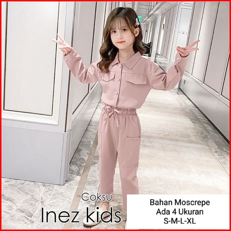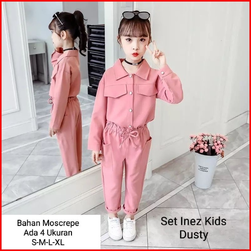Stelan Kemeja Anak Perempuan Lengan Panjang Celana Panjang Set Inez Kids 3-11 Tahun Matt Moscrepe