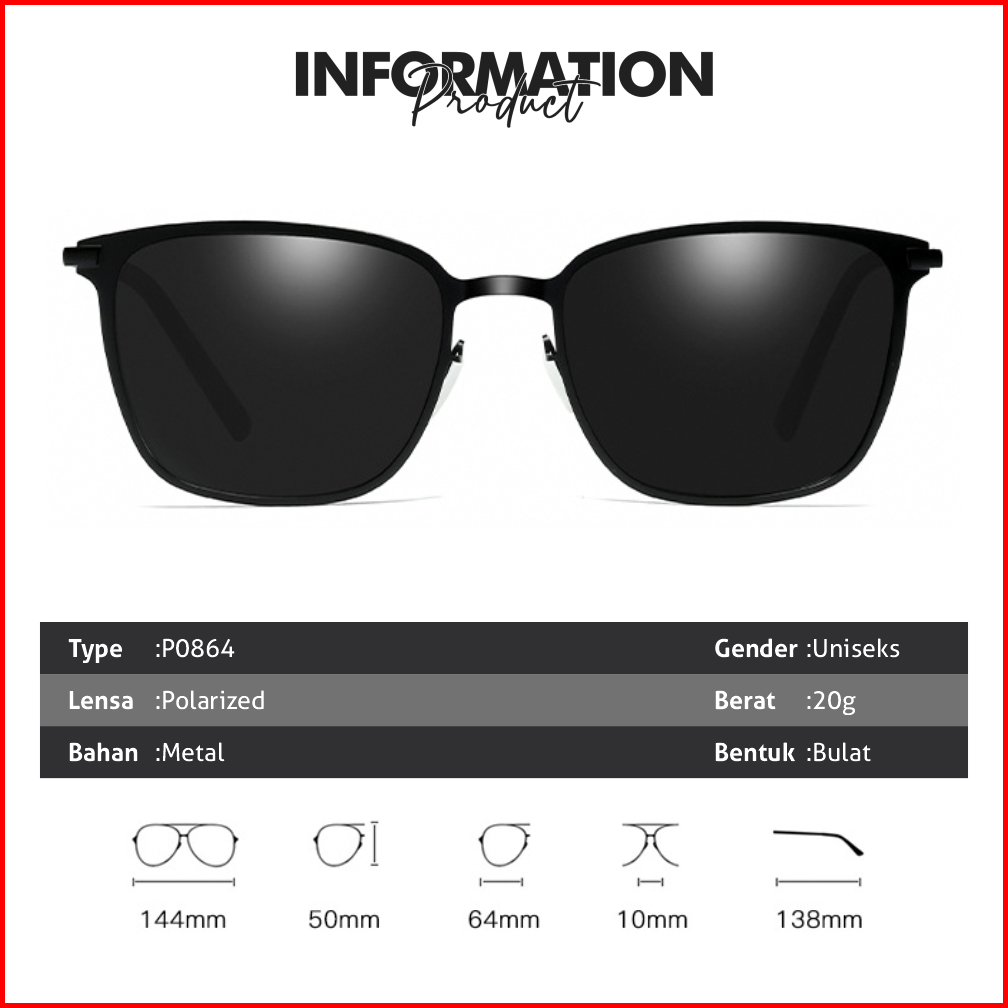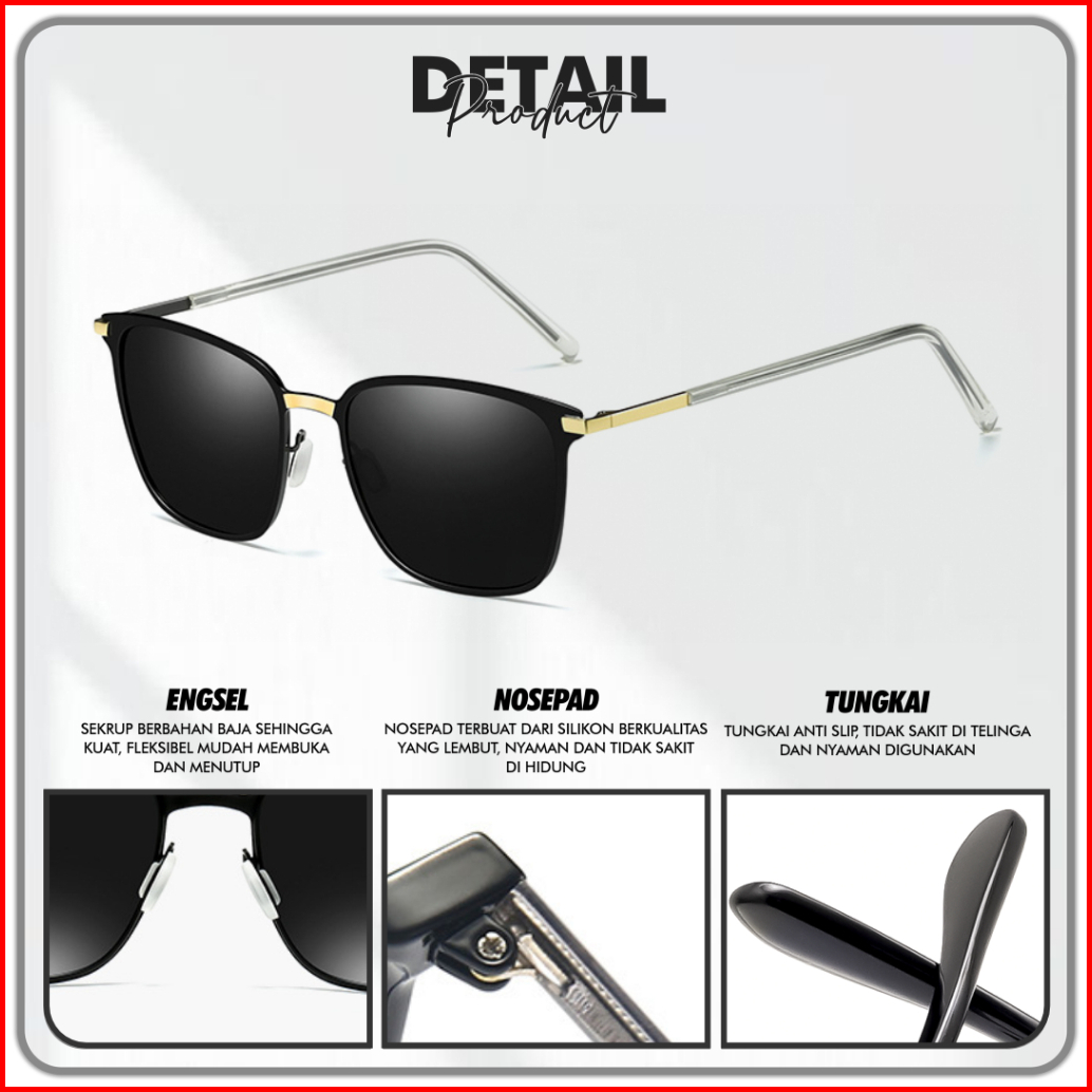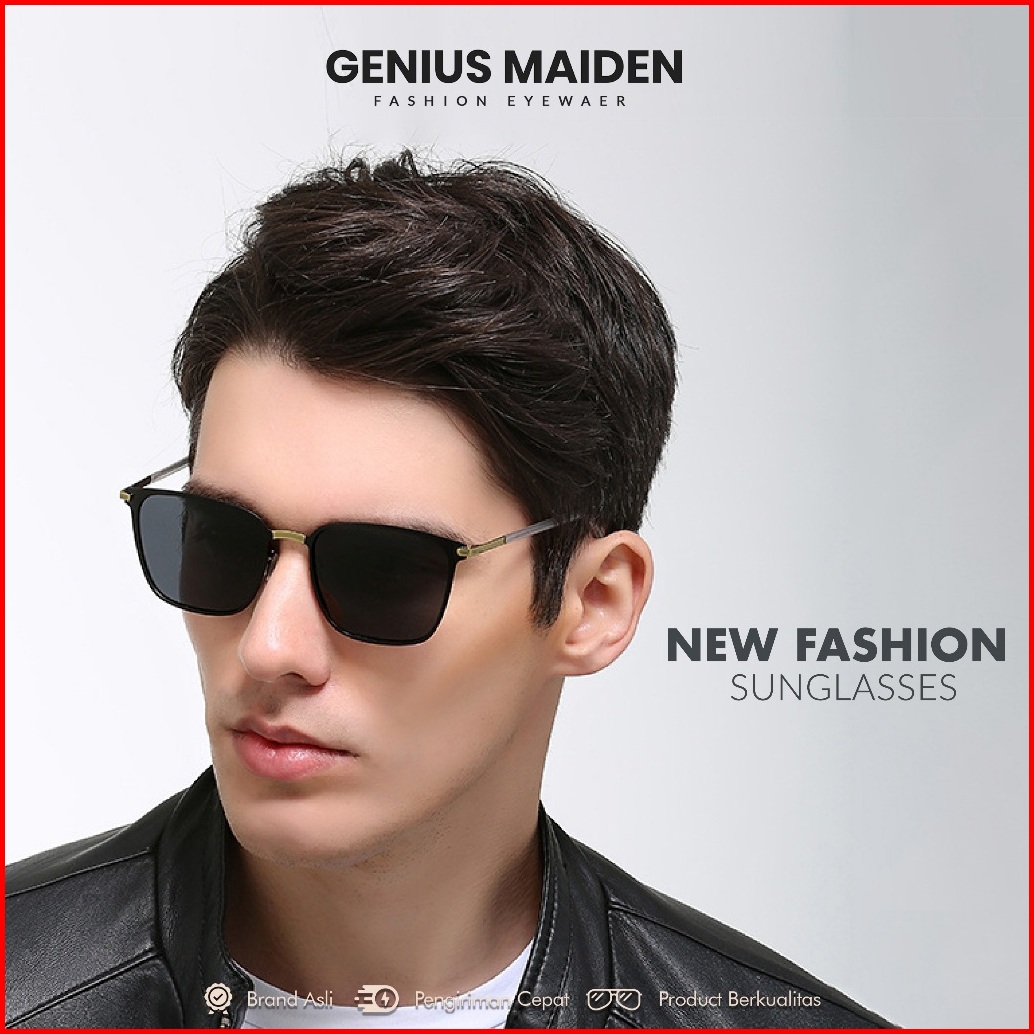 Genius Maiden Kacamata Hitam Sunglasses Polarized Fashion Korea Pria Wanita Bentuk Kotak Bahan Metal Anti Silau P0864