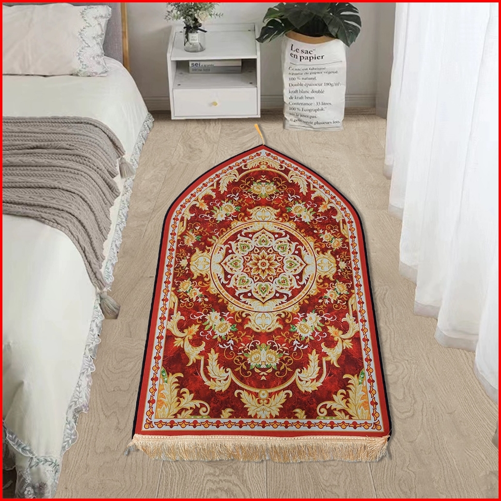 New Sajadah Model Kubah Turki Rumbai Bahan Polyester Anti Slip Alas Sholat Motif Premium Motif Size 70x110cm