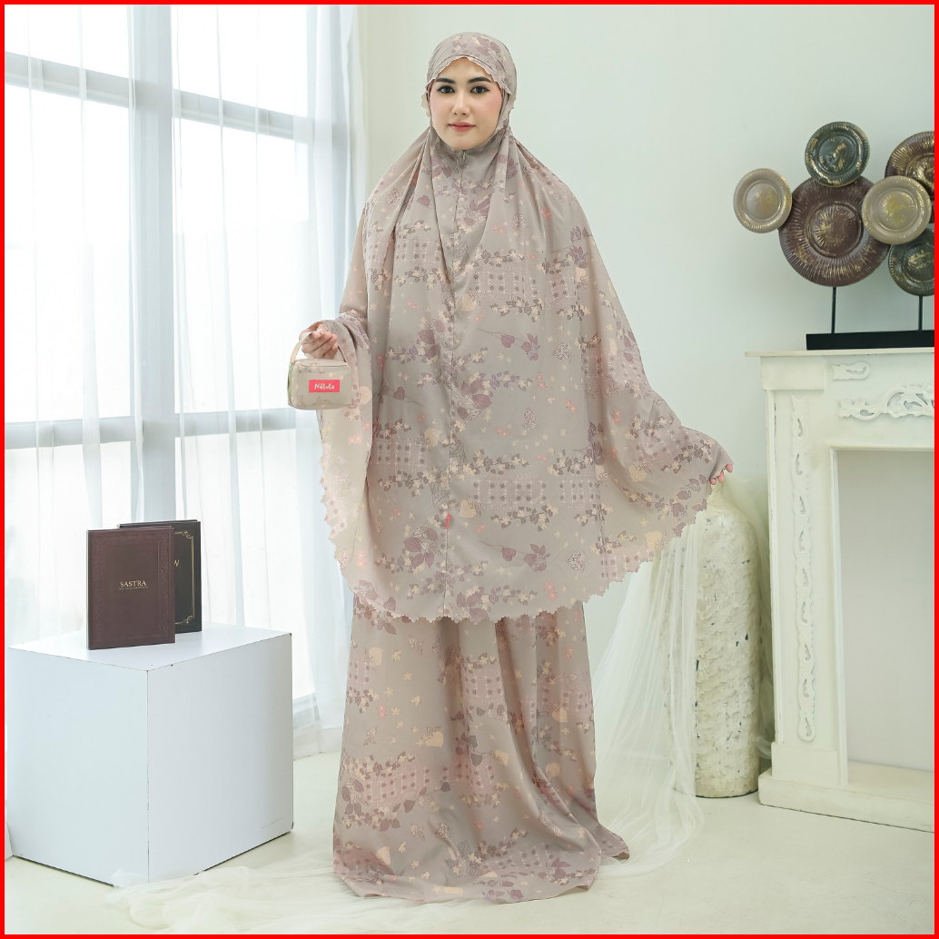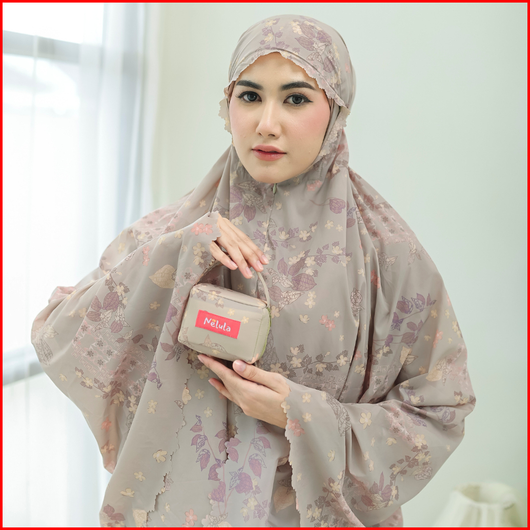 Nelula - Mukena 2in1 Dewasa Lasercut Traveling Mini Pouch Bahan Parasut Korea Motif Flower Premium