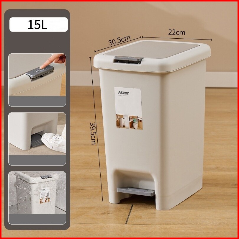 Tempat Sampah Injak Tong Sampah Tertutup Trash Bin 8l 10l 15l Kotak Sampah Modern