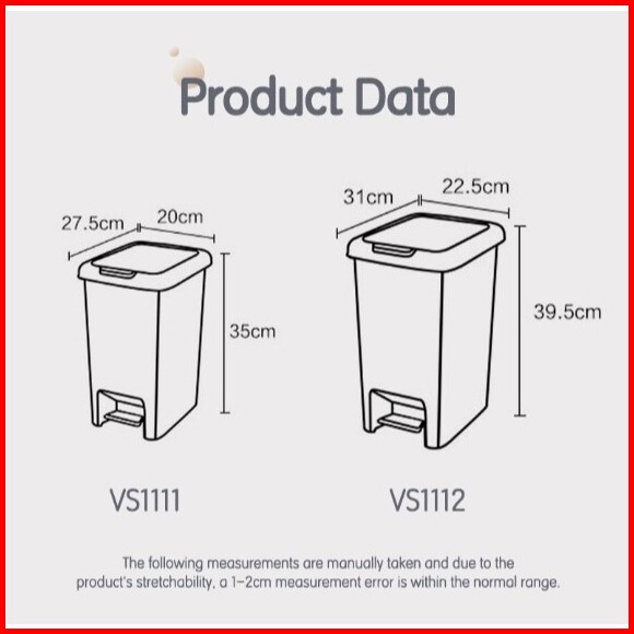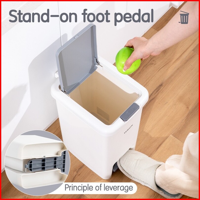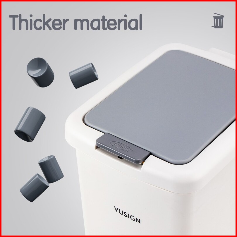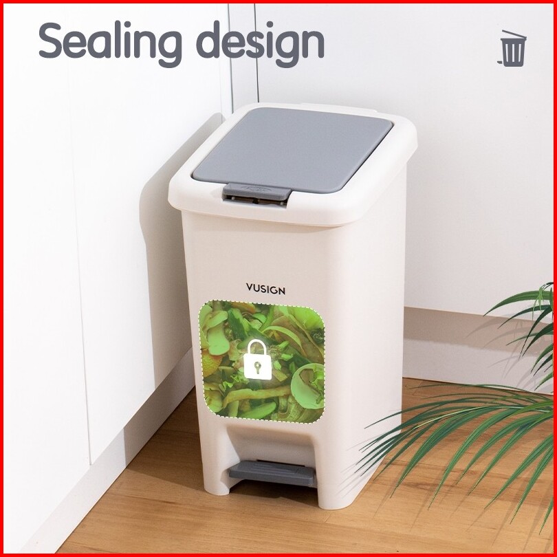 Vusign Trash Can Tempat Sampah Injak Tong Sampah Plastik Tertutup Ruang Tamu Dapur Kotak 15 Liter Vs1111 Vs1112