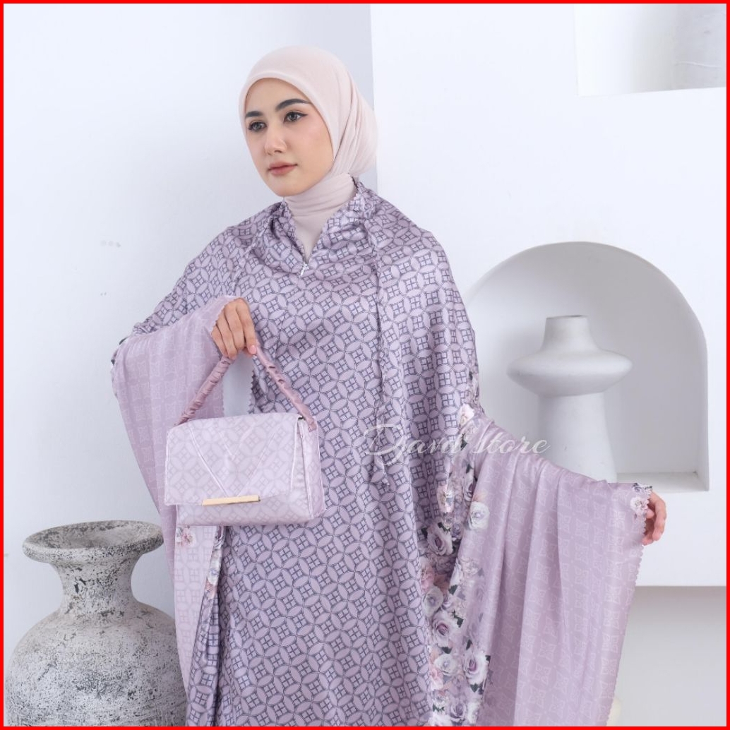 Mukena Dewasa Silky Armanie Motif Terbaru Sleting Dagu 2in1 Free Mini Pouch