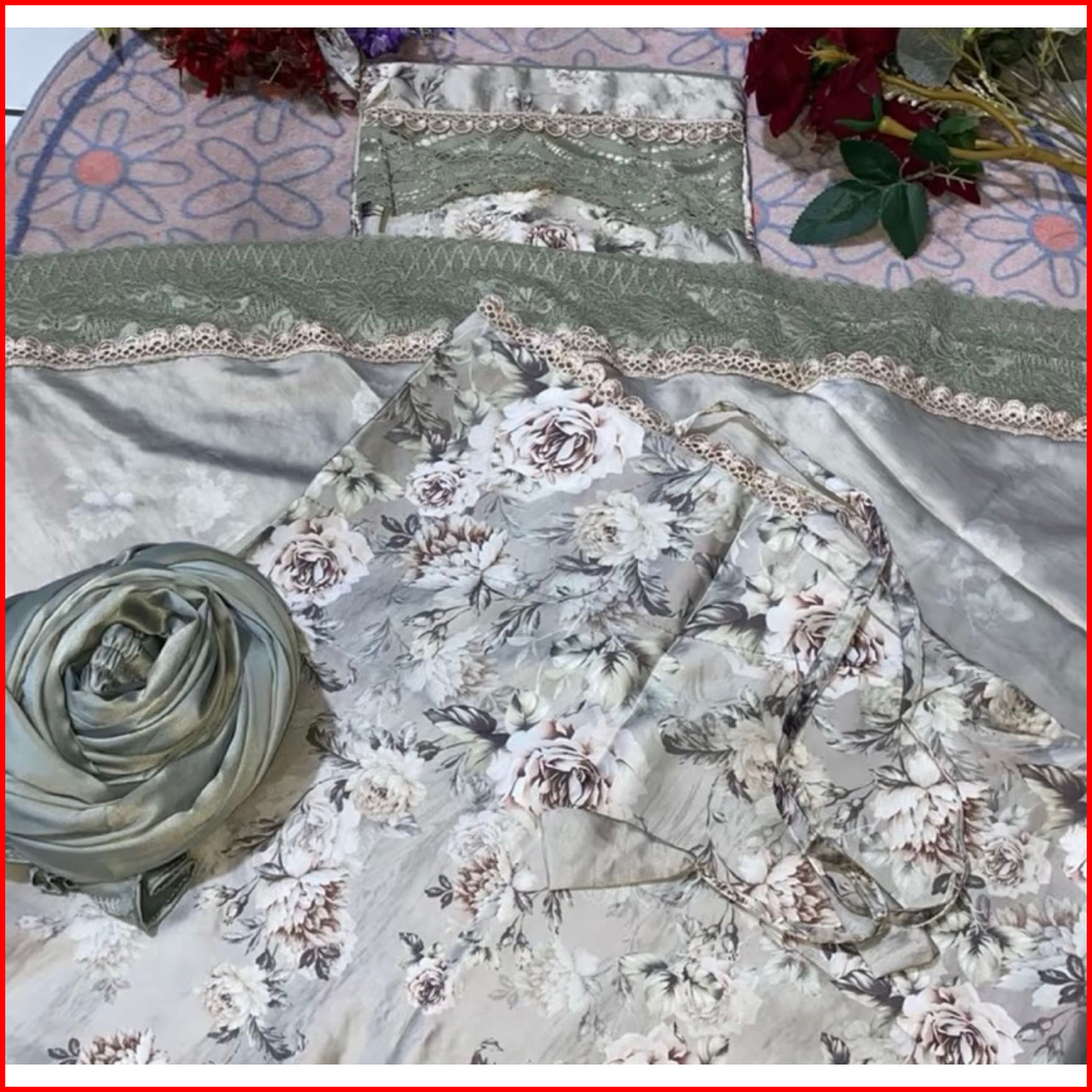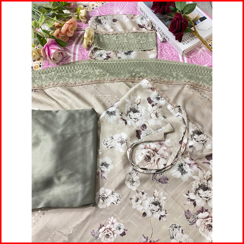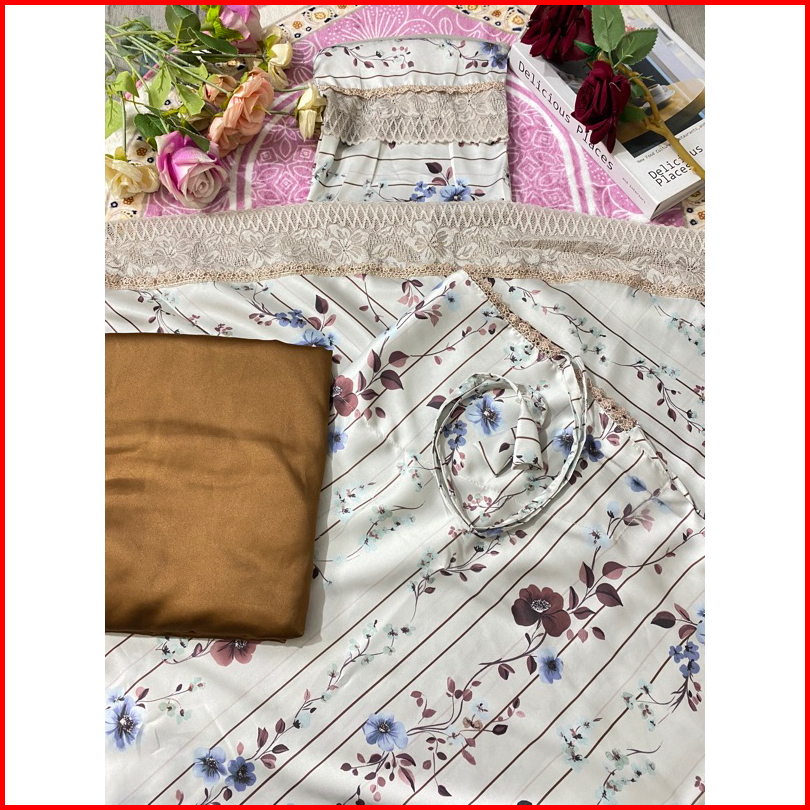 Mukena Diamond Armaniya Silk Kombinasi Bawahan Polos Renda Tumpuk Midi