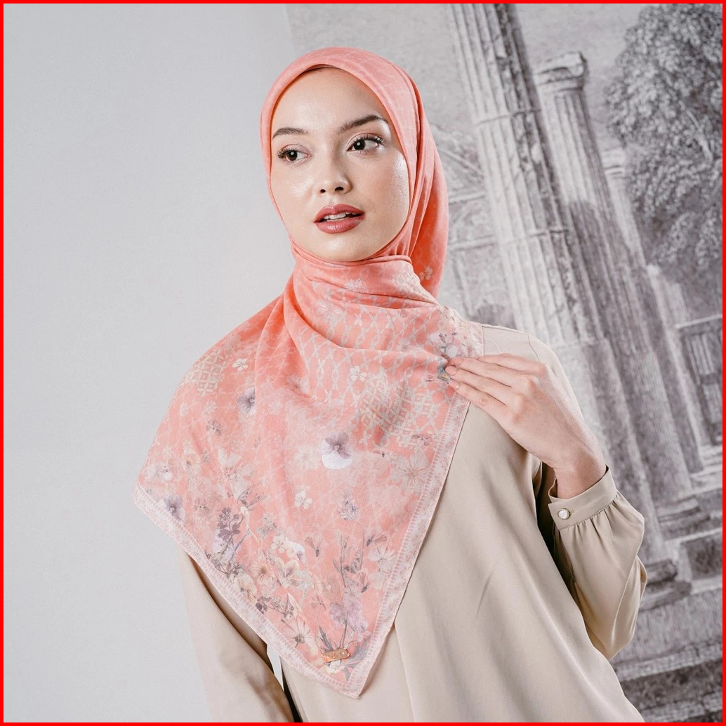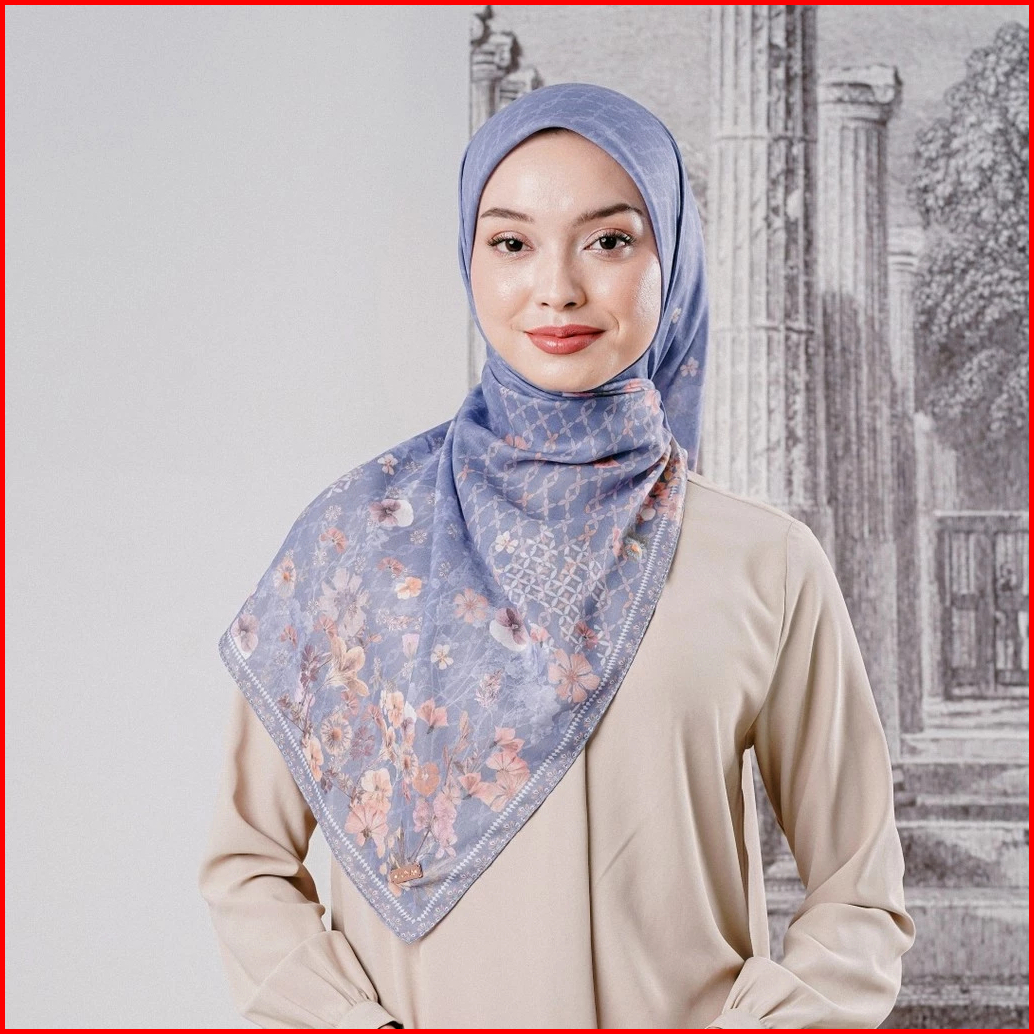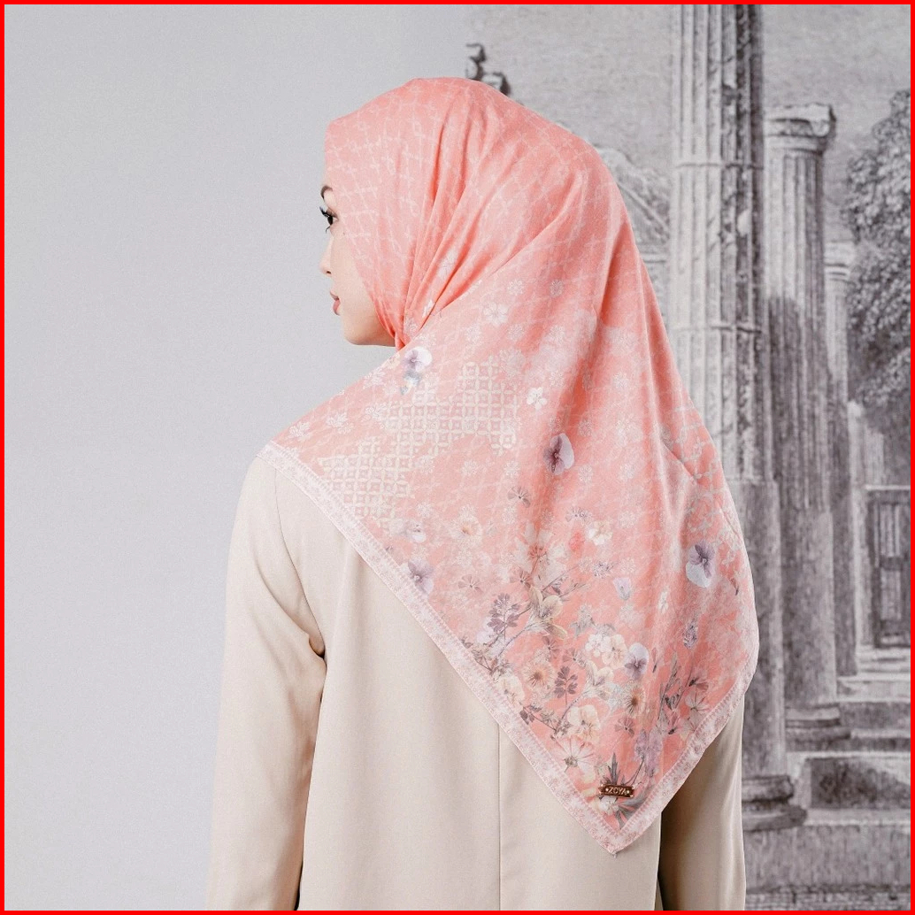 Zoya Navulia Scarf - Kerudung Hijab Segiempat Motif With Box - Bahan Voal Premium - Ukuran 115x115
