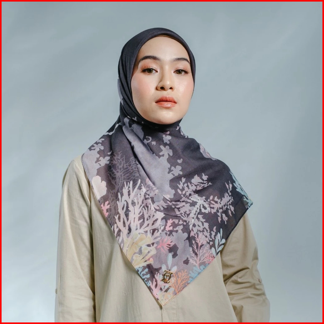 Zoya Pearl Scarf - Kerudung Hijab Segiempat Motif With Box - Bahan Nesla - Ukuran 115x115